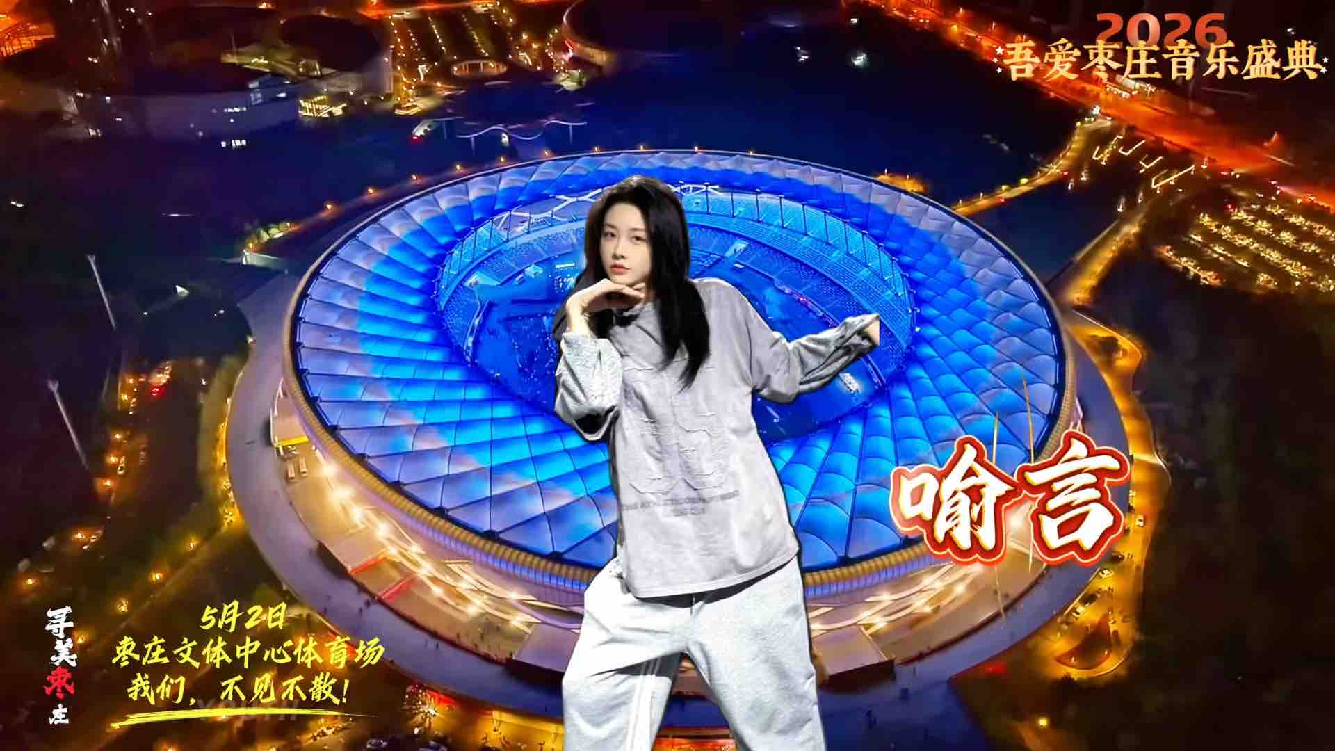 舞台先锋——喻言,好棒!我在枣庄等你。2026吾爱枣庄音乐盛典,枣庄文体中心体育场,我们,不见不散!等你一起逛台儿庄古城。