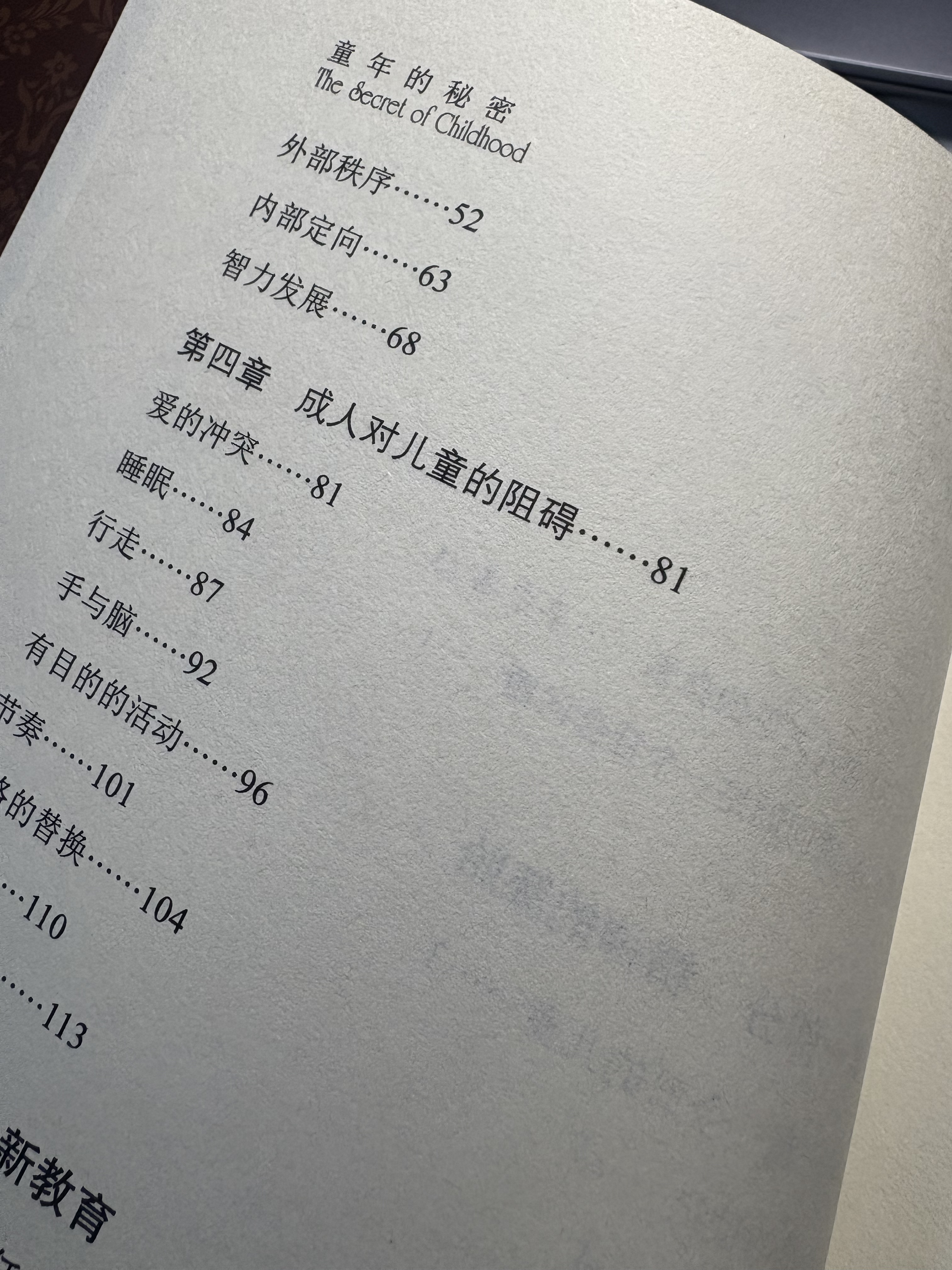 #童年的秘密# Day31 第三章 形成中的心理-外部秩序 儿童总是通过物体的外部秩序,而认识它周围的环境,并理解它自身与环境的关系。 在作者的学校里,如果任何东西没有放到它规定的地方,2岁大的儿童就会注意到它,并把它放回去。 有一个例子。一位小女孩在看到客人来她家做客时。把她的阳伞放在桌上,于是小女孩开始哭。大人以为小女孩想要这把伞。当客人把伞拿给他她时,却哭的更激烈了。这时小女孩母亲把这把伞拿到房间外面去。小女孩就不哭了。她之所以焦虑不安的原因是那把伞放错了位置。即无序现象作为一种不和谐的障碍,影响了孩子。 这表明儿童对秩序有强烈渴望,同样使人惊讶的是儿童的早熟程度。且秩序对于儿童来说是一个生与死的问题,但对成人来说,它只是一个关于是否快乐和舒适的问题。 还有研究发现一个小孩在与其父亲玩游戏时,父亲把东西藏在坐垫下面。而孩子在意的只是这是否被放回原处?这也让我突然懂得为什么儿童喜欢玩捉迷藏,因为对儿童来说把一些东西藏起来就是看不见这些东西,它的重新发现会带来一种秩序感。