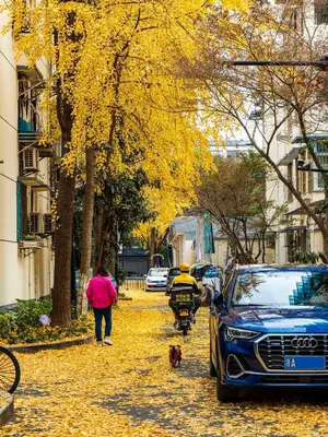金黄的树叶配着街头的生活气息看着就很温暖~.阳光吻过的几棵树已经彻底染成蜜色,连白墙黑瓦的老院都裹上了温柔的金边,街道藏着两个S弯,银杏枝桠顺着弯道舒展 镜头一抬就是“金黄隧道”既视感.【tips】✅清吟街的银杏黄了有8成,有阳光照到的几棵已经全黄了✅路口外国语学院门口的还没黄,要想全黄还要等1周.清吟街(中河中路至直大方伯)