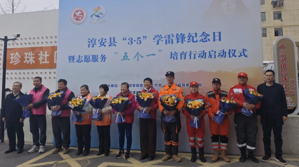 3月5日上午,淳安县“3·5”学雷锋纪念日暨志愿服务“五个一”培育行动启动仪式在千岛湖镇珍珠社区举行,来自全县的志愿者代表、相关单位负责人及社区居民齐聚一堂。此次活动围绕守护“一湖”、关爱“一老”、呵护“一小”、凝聚“一新”、助力“一富”五个领域开展,在温馨的“五个一”志愿服务剪影中拉开序幕,一幕幕温暖定格的瞬间引发共鸣。
