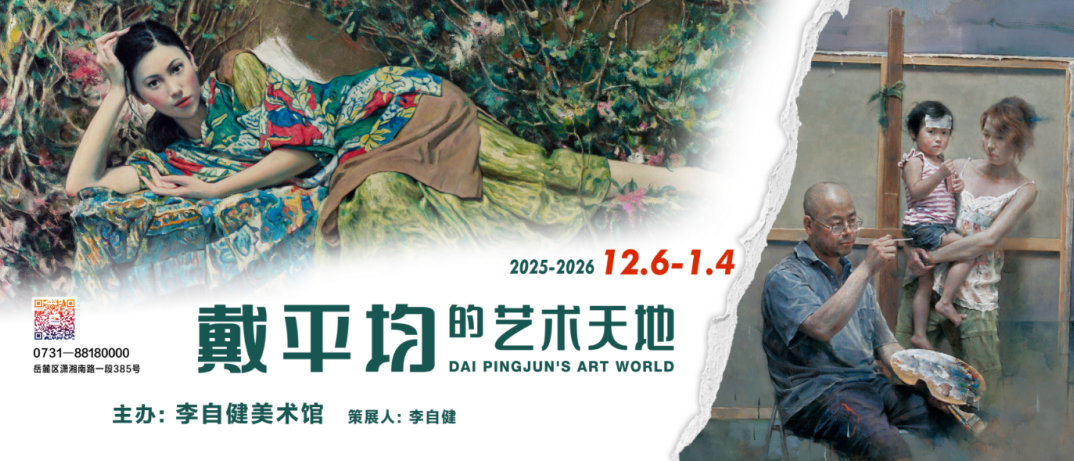 戴平均的艺术天地 策展人:李自健 主办:李自健美术馆 展期:2025-2026 12.6-1.4 展区:C1、2、4展厅 地址:湖南省长沙市岳麓区潇湘南路385号