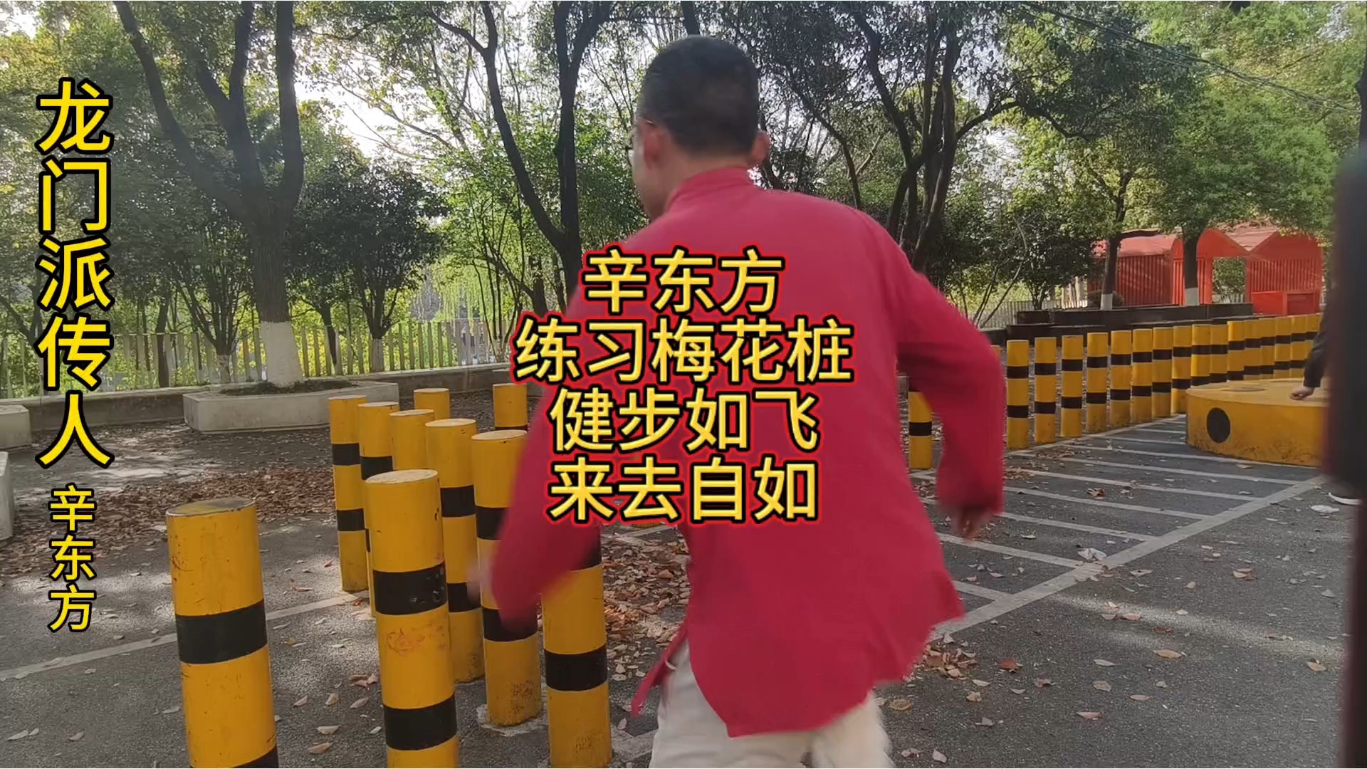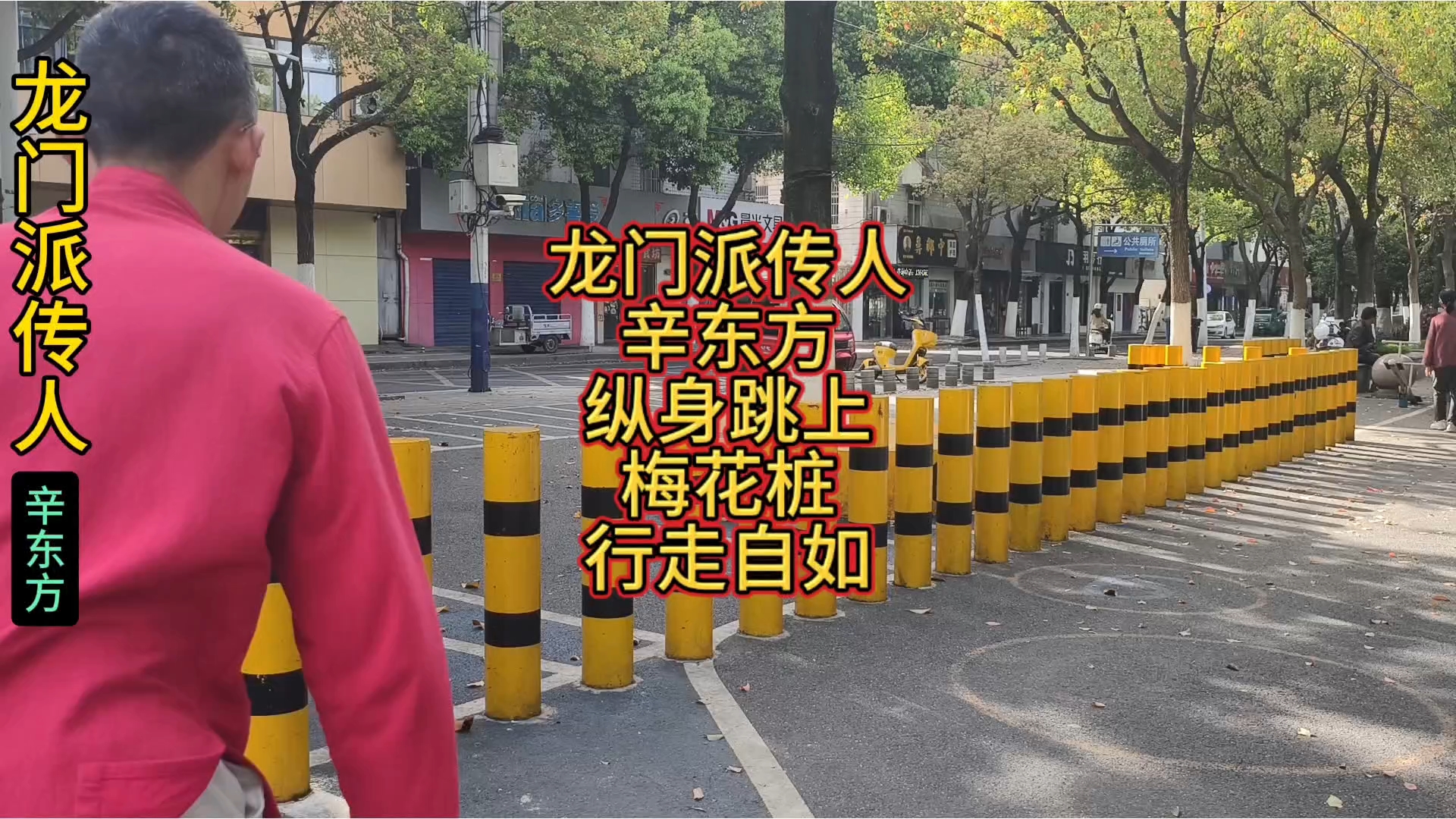 龙门派传人辛东方纵身一跃梅花桩,行走自如#功夫辛东方#传统武术#梅花桩