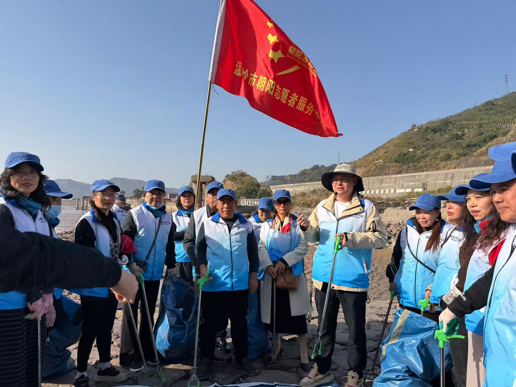 不忘初心/守护蔚蓝 初冬的晨光温柔地洒在石桥下山头的滩涂上,2025年11月27日,一个平凡的日子,近五十名的朝阳志愿者在温岭市青志协的领导组织下,他们以行动为笔,爱心为墨,在此同绘生态画卷,共同期许一个绿色的未来。 上午8点30分钟,志愿者齐聚海滩,又一场由蚂蚁森林基金会和北京市企业家环保基金会(SEE基金会)发起,2025年温岭市青年志愿者协会承接其在温岭的净滩公益行动开始了。 活动中,志愿者在滩涂上、石缝间捡拾各种海漂垃圾。看:他们左手提着垃圾袋,右手握着垃圾钳,熟练地俯身夹起滩涂上的塑料瓶、塑料泡沫、破旧鱼网、玻璃碎及各种易拉鑵、毛竹、木板等,对不能用钳夹的碎细泡沫,志愿者徒手捡拾,力求海滩完美。 经过上午的辛勤劳动,每个志愿者都是“战果累累”,滩涂变得洁净多了。活动最后,在赵鹏程老师的指导下,进行垃圾分类,赵老师深入浅出的讲解,让我们进一步理解以前叫〈可回收垃圾〉,现在叫可回收物。一次性的电池叫其它垃圾,而反复可以冲电的报废电池叫有害垃圾。 此次活动不仅改善了海洋环境,更主要的是宣传引导广大市民爱护环境,还大海以洁净。我们朝阳在青志协及各级领导的指导与支持下,持续常态化组织志愿者开展净滩护滩志愿服务活动,共同守护我们大家的碧海蓝天贡献力量。