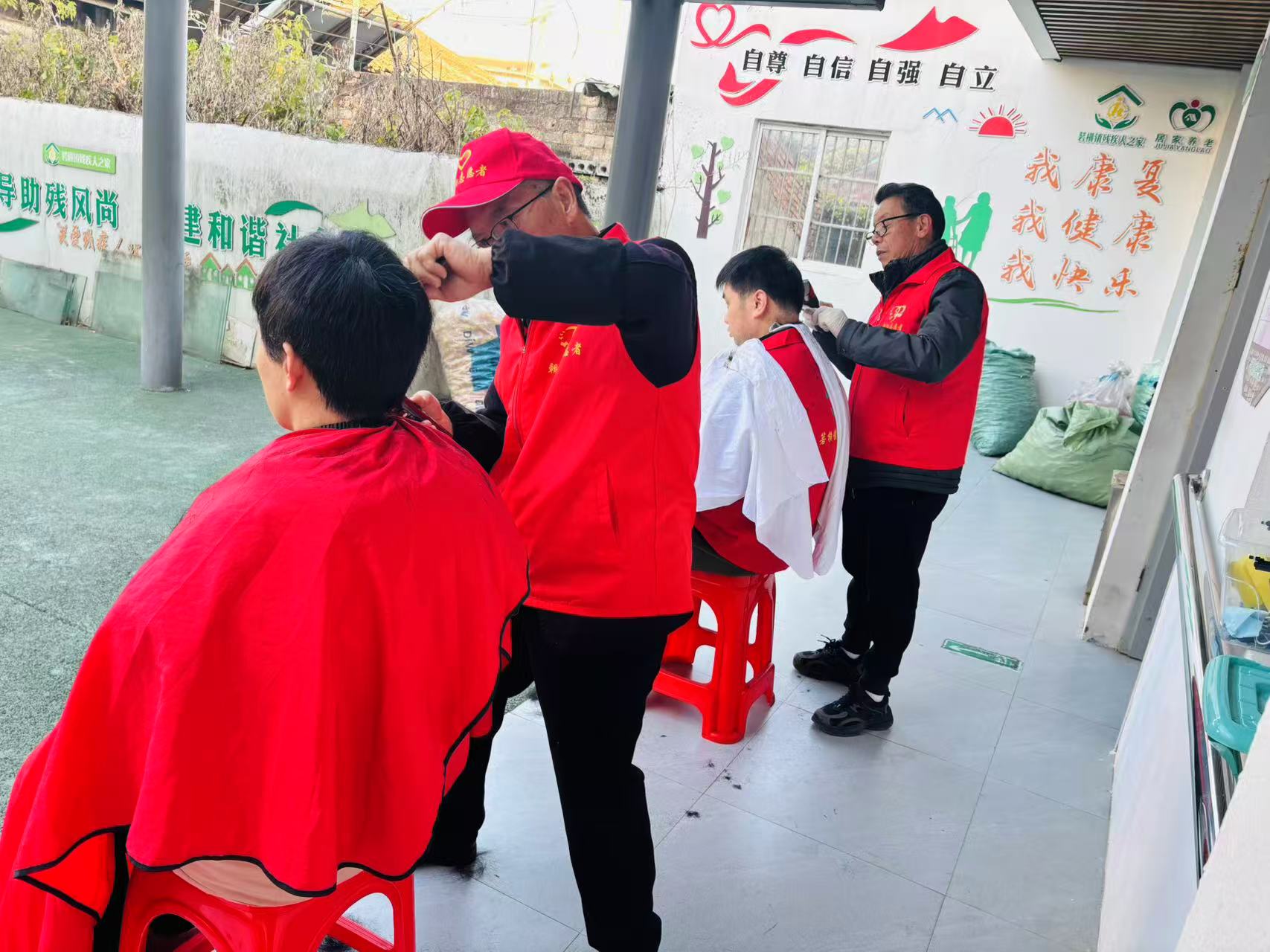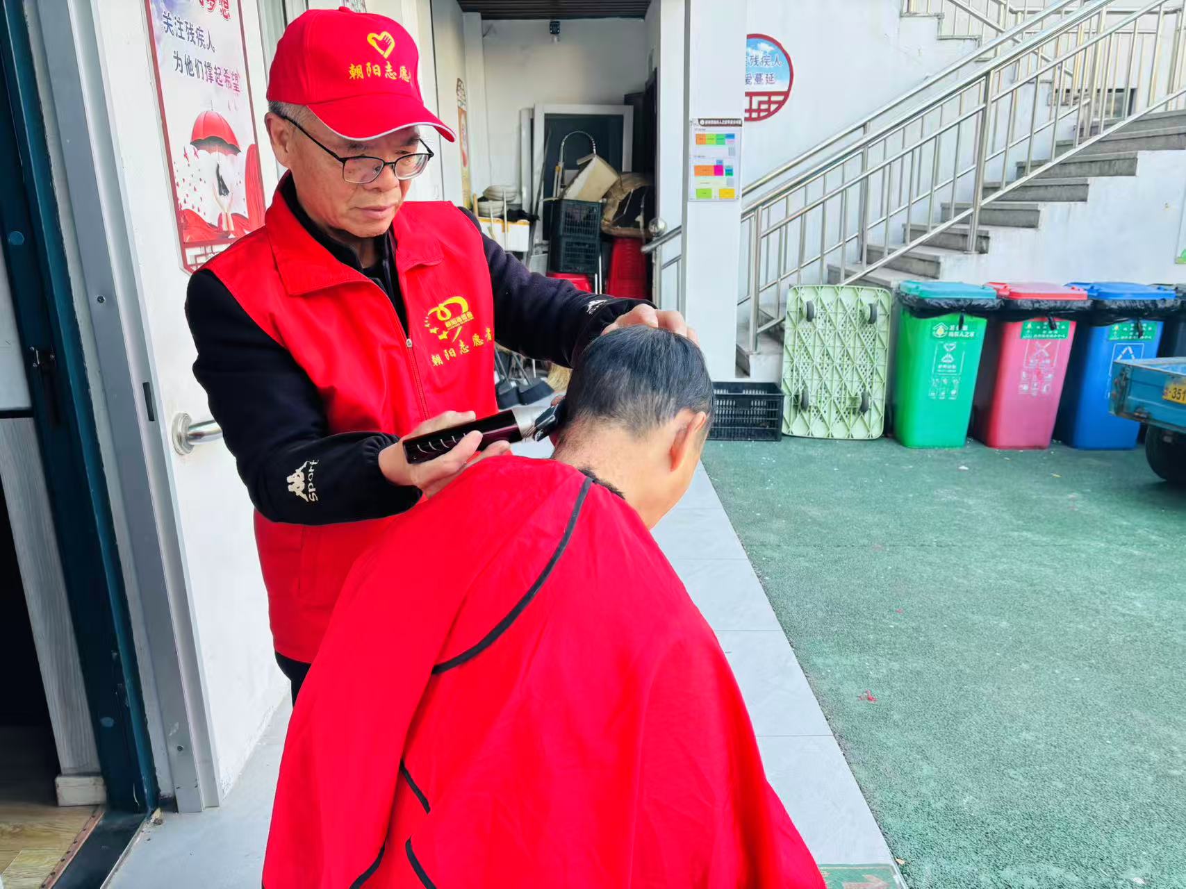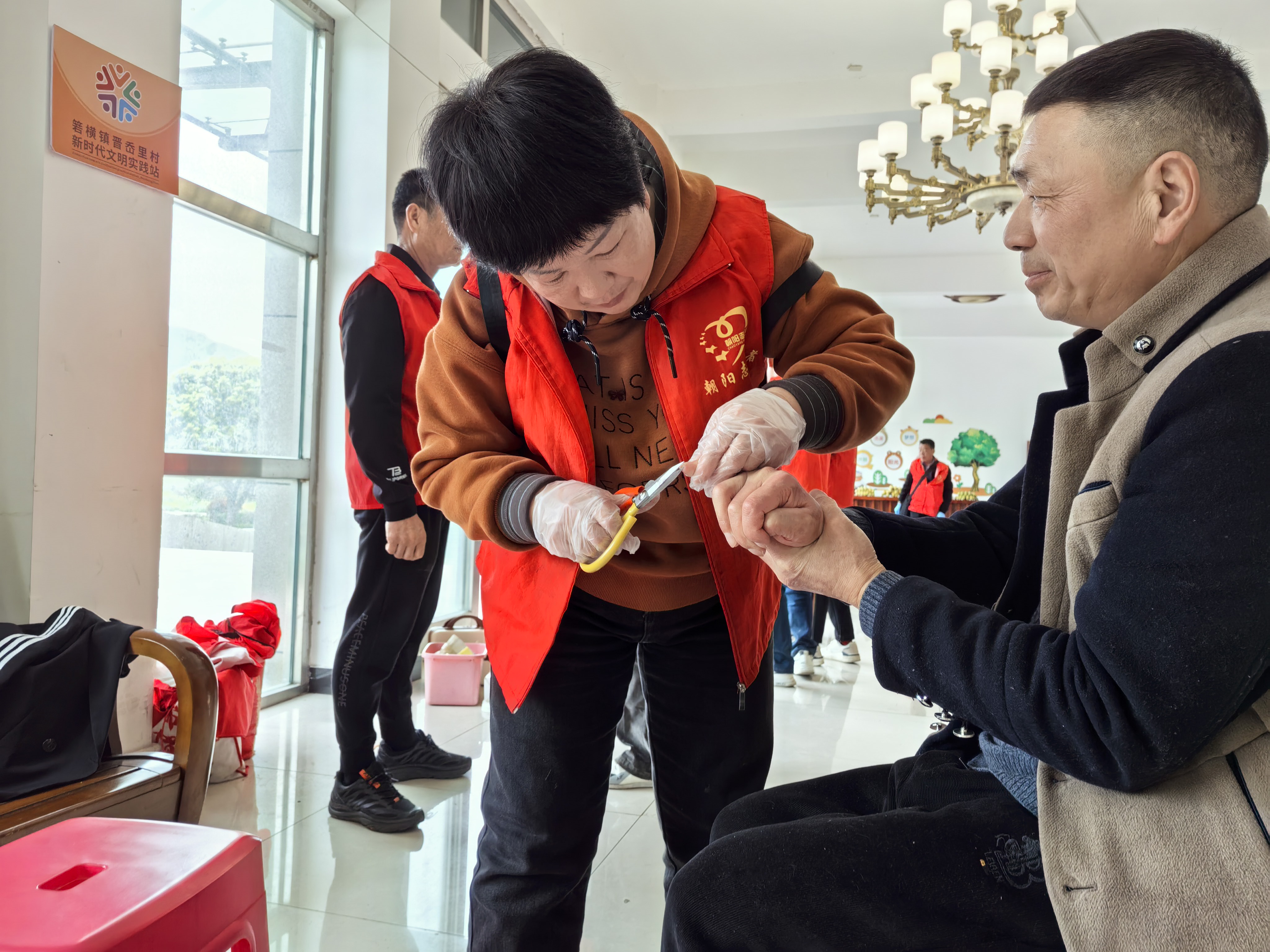 3月31日上午,受晋岙村村委会邀请,温岭市朝阳志愿者一行27人到晋岙村为80多位残疾人朋友义剪活动,志愿者带着理发工具、指甲键、水果等,走进晋岙村村部,大家分工明确,理发的、剪指甲的,陪聊天的、分发水果的,各司其职。不管对坐在轮椅上的,还是坐在登子上的残疾人朋友,我们都弯腰轻言细语与他(她)们交流,征求他们对发型的需求,随着电剪碰着发丝的沙沙声里,那些被剪掉的不是头发,是"不方便"的愁;梳子梳过鬓角时,那些落在肩上的不是碎发,是"我也能好看"的笃定。当最后一把剪刀合上,老人们摸着新剪的头发笑了。地上落满碎发,志愿者不声不响拿起扫把,把地清扫干净。我们的细心、恒心、爱心,感染了各位来理发的残疾朋友,他们真诚对志愿者连声道谢,感谢志愿者对出门不便的他们带来方便! 希望我们的细心、恒心、爱心化作春风,能温暖每一位残疾朋友的心田,这---就是我们志愿者最大的心愿!