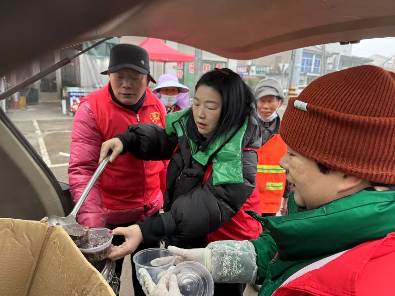 《又是一年腊八节》 腊八到、年将至,为了让辖区居民、环卫工人、居家养老、贫残家庭等群体感受传统节日的魅力,弘扬中华民族传统文化,温岭市朝阳志愿者服务中心1月24号购食材,25号上午蒸、煮不容易煮烂的豆和黑米等,下午烧腊八粥到深夜。26日一大早,志愿者兵分六路,把热气腾腾、粥香四溢的腊八粥主动送到环卫工人手中,环卫工人的一句好暖和,感动了志愿者,让志愿者忘记了疲惫。在固定点位,志愿者为急匆匆的上班族、早锻炼的老人们、带娃的宝妈等,送上一碗香甜的腊八粥,一碗滚烫的腊八粥让他们感到暖心,脸上都洋溢着幸福与满足的笑脸。 一碗碗香甜的腊八粥、家的味道,传递着志愿者对居民们的缕缕温暖和关怀,拉近了志愿者与社会各界的距离!
