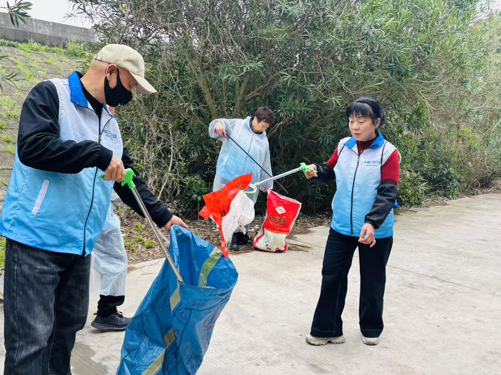 3月28日上午,20多位温岭市朝阳志愿者来到箬横镇灌溉千亩良田、南北通行的主河道---木城河河道两边捡拾各种垃圾、巡查水质,以实际行动守护碧水清波。 20多把夹键伸向绿化带、绿道路上、木城河岸边,把那些无家可归的破碎薄膜、各种饮料瓶、食品包装纸,还有那些随手丢弃卡在石缝里的烟头,我们把它们一一捡起装进袋子里,送到它们该去的地方,让它们变废为宝,造福人类。