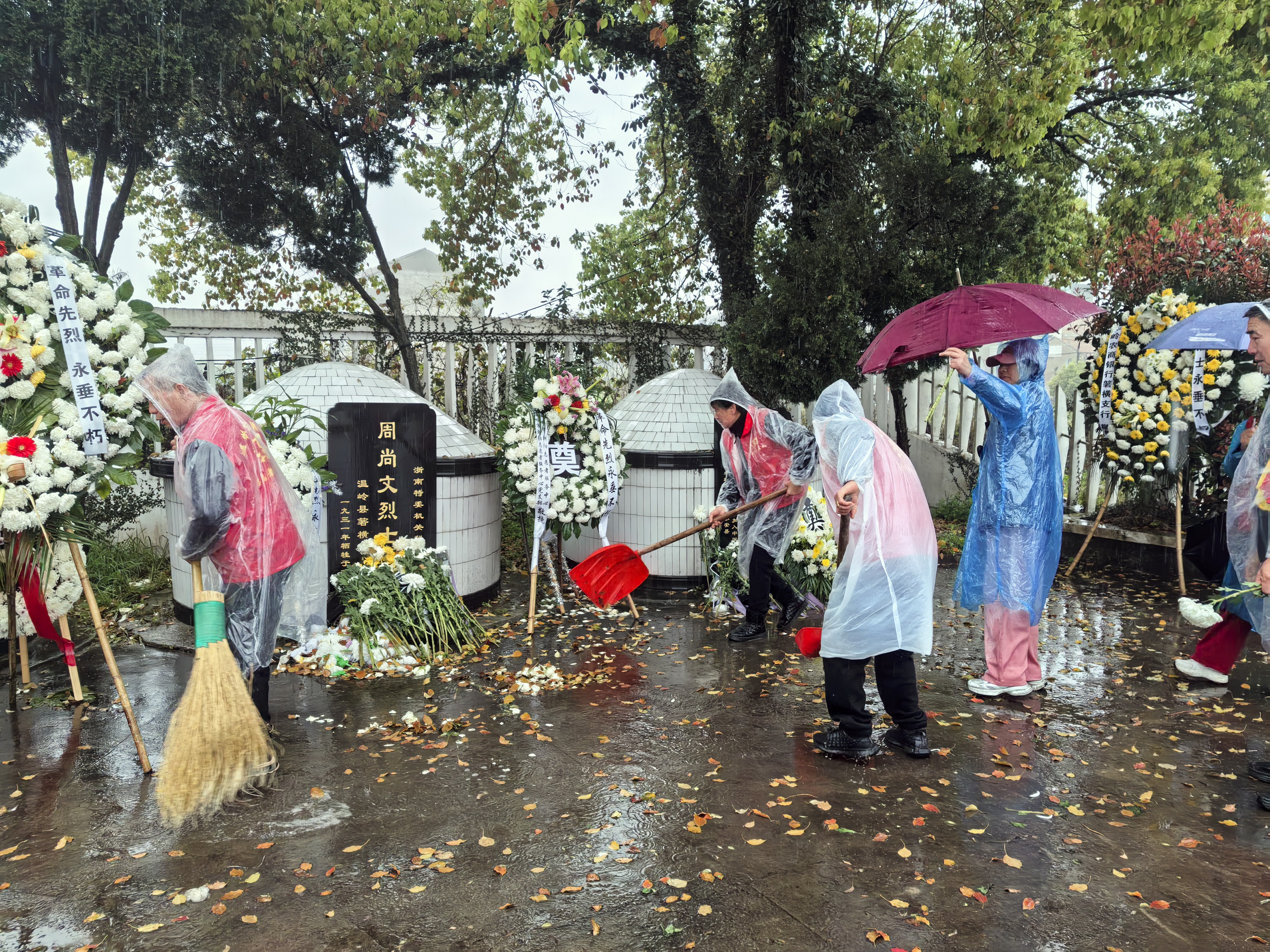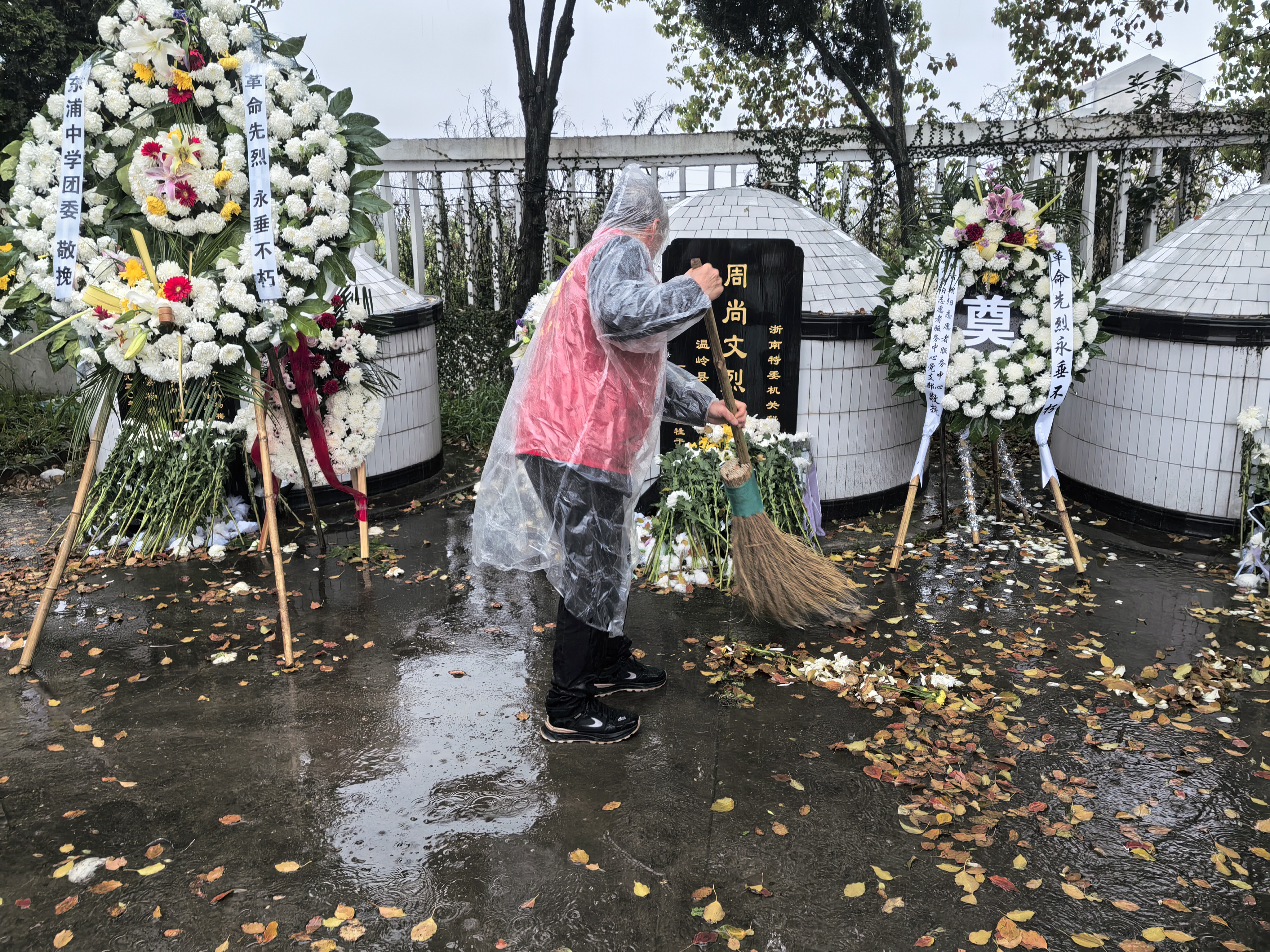 清明时节雨纷纷/朝阳志愿敬英魂 又是一年清明节,4月3日上午,温岭市朝阳志愿者服务中心的共产党员及志愿者一行27人,冒着大雨走进箬横镇烈士陵园,祭拜先烈。 我们不是简单的祭拜,是带着“传承红色精神、厚植家国情怀”的使命,我们站在烈士陵园前,不是站在“过去”里,而是站在“未来”里。我们不是向墓碑鞠躬,而是向“革命先烈”牺牲致敬。我们抬头不是看墓碑上的字,是看“红色精神”的传承。我们献花时,不是送花给烈士,是送“家国情怀”给未来的自己。当雨滴不停地落在我们的肩头,当烈士陵园地上留下我们的脚印,这场祭拜早就不是缅怀,是把“红色精神”变成“奋进力量〞,是把“家国情怀”变成每一天的行动! 在缅怀先烈,传承红色精神的道路上,温岭市朝阳的党员及志愿者们在今后的岁月里,每一步都踏出奋进的力量,每一份奉献都化作春风,温暖家国情怀,让英魂在奋进中永存!