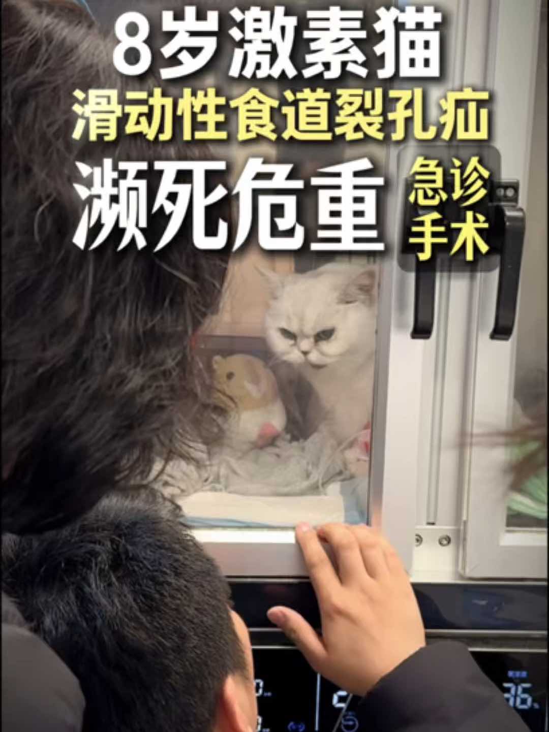 “8岁激素猫,滑动性食道裂孔疝,濒死危重急诊手术” 它被送来的隔天已经喘不上气了。主人趴在ICU窗前,隔着玻璃摸它,眼泪止不住。8年,从一只激素猫开始,药没断过,院没少住,儿子放下工作陪着,妈妈在旁边打辅助。他们愣是把这只猫,护到了8岁。 不煽情,但看到主人笑着那一刻,我们知道——这8年,值了。 #四叶草动物医院 #哪吒 #滑动性食道裂孔疝 #猫咪手术