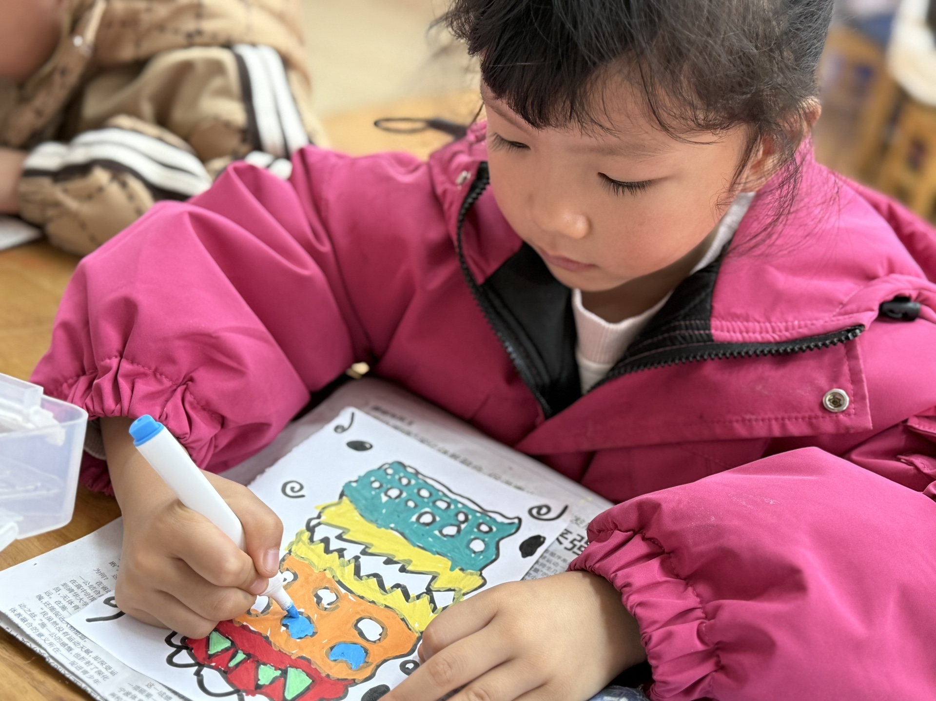 大班创意绘画:毛线“跳”出的水墨花韵 “我的毛线蘸了红颜料,像开花啦!”12月3日,柯桥双梅幼儿园大一班的美术室里,一场别开生面的“毛线创意绘画”活动正在进行——孩子们握着毛线蘸取颜料,在画纸上“甩、拖、点”,晕染出一朵朵灵动的水墨花。 活动伊始,老师示范用毛线创作:将毛线浸入颜料,轻轻提起甩在纸上,红、紫、棕等色彩瞬间晕开,像花瓣舒展;再拖动毛线,颜料顺着纹理蔓延,成了自然的花枝。孩子们眼睛发亮,纷纷拿起毛线尝试:有的把毛线拧成“小辫”蘸满红墨,甩在纸上变出“爆炸的红菊”;有的蘸了紫、棕两色颜料,拖出深浅交织的“神秘花朵”;还有孩子特意点上黄点点,笑着说“这是花蕊在眨眼睛”。 当孩子们举着作品展示时,原本普通的毛线,已变成了“会开花的画笔”——一张作品里,红墨晕开的花瓣旁,毛线拖出的绿枝还带着颜料的“小尾巴”,孩子得意地介绍:“这是风把花枝吹弯啦!” 老师笑着说:“用毛线代替画笔,既能让孩子感受色彩晕染的美,又能锻炼手部力量。”家长们看到作品后也感叹:“没想到毛线能画出这么灵动的花,孩子的创意比颜料还鲜活!” 柯桥双梅幼儿园 杨吉敏 吴亚平