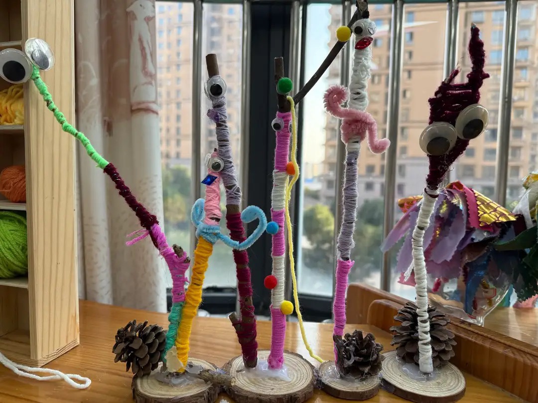 大班手工活动:给小树“穿新衣”,毛线缠出自然趣