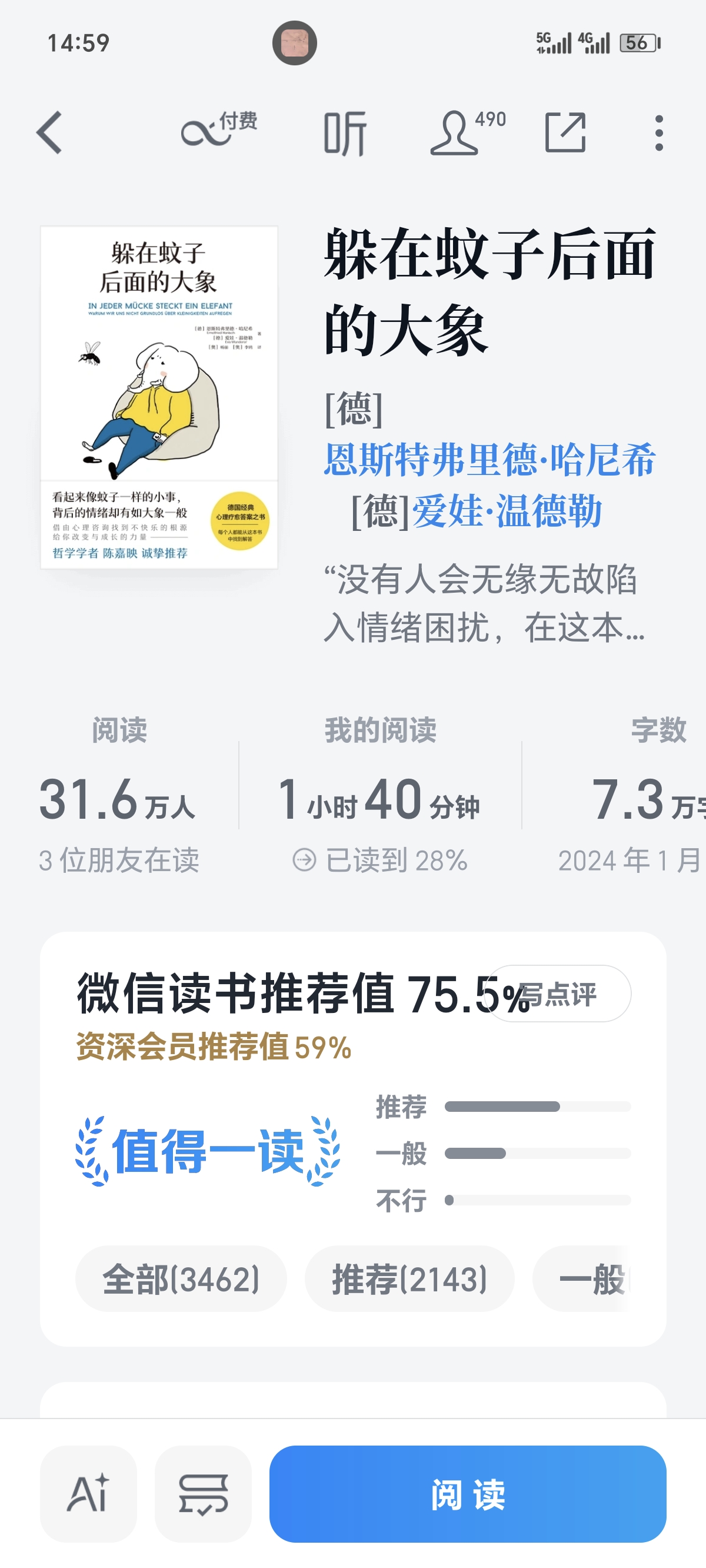 四月是世界阅读月,多读书,坚持读,相信会有收获的! 今天看到第二章了,第二章的标题是《搜寻对象:隐藏的大象》,不管任何事,任何人,只要引起自己情绪波动的,我们都要冷静分析引起情绪波动的原因是什么?看下这头情绪大象究竟是什么?如何进行调整,这个是我们应该做的。很认可这句话:“当一个孩子的感受经常得不到认真对待,在孩子内心就会形成一头大象。”所以,面对自己的各种情绪,积极的也好,消极的也罢,我们首先都要接纳它,再认真对待它,正视它,给它应有的尊重,相信一段时间训练后,我们都会拥有更强大的正念力量。