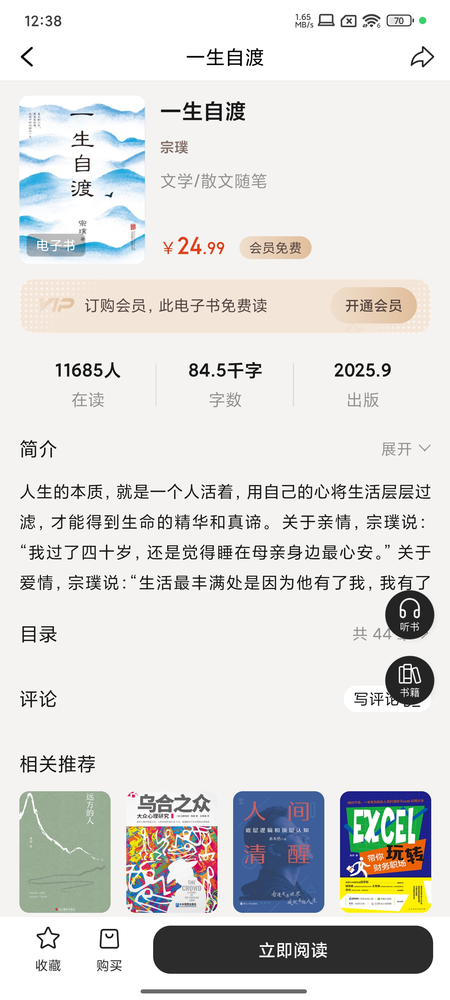 今日共读《一生自渡》之辑二“晚霞落黄昏,古人上心头”。读罢心绪如暮色沉沉,泛起难以言说的酸涩。想起上月两位至亲的相继离去,仿佛晚霞骤然黯淡,余温尚在,人已天涯。书中一句“古人上心头”,竟让我泪眼朦胧——原来思念从不因时光流转而消减,反在静夜独坐时愈发清晰。他们曾给予的温暖、叮咛与沉默的爱,如今化作心头最柔软也最痛的印记。人生逆旅,终须自渡,可在这渡口回望,仍愿以文字为舟,载一程未尽的告别,送他们远行于永恒的黄昏。 湖边的石奇巧秀丽,树木品种很多,一片绿影在水中,反照出来,有一种淡淡的幽光。水面非常安详闲适,妩媚极了,我以后再没有见到这样纯真妩媚的湖。 那时我们几个少年人在一起,有人随便说一句:“太阳出来了!”别的人就会自然的接上去:“黑暗留在后头,但是太阳不是我们的,我们要睡了。” 在最艰险的时刻,是朴素的亲情挽住了生命之舟。 有的人内涵很少,却从外界得到很多,有的人内涵丰富,却从外界得到很少,这也就是一种平衡吧!