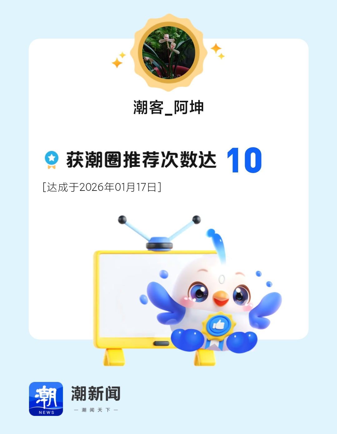 我的作品被潮新闻潮圈频道累计推荐10次,来我的主页看看吧!