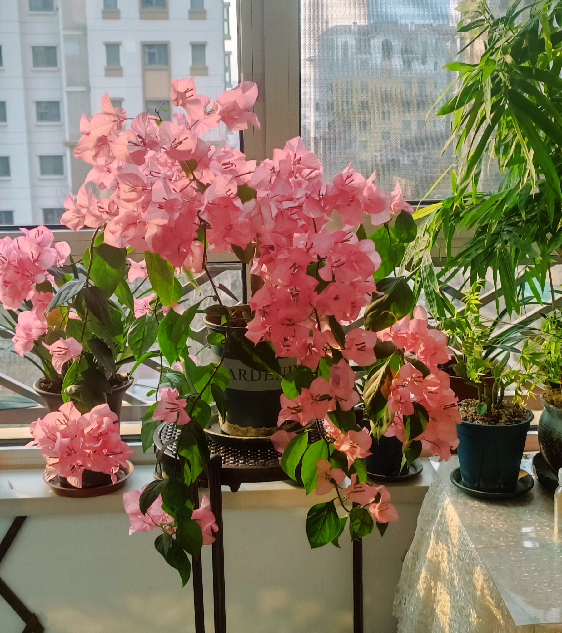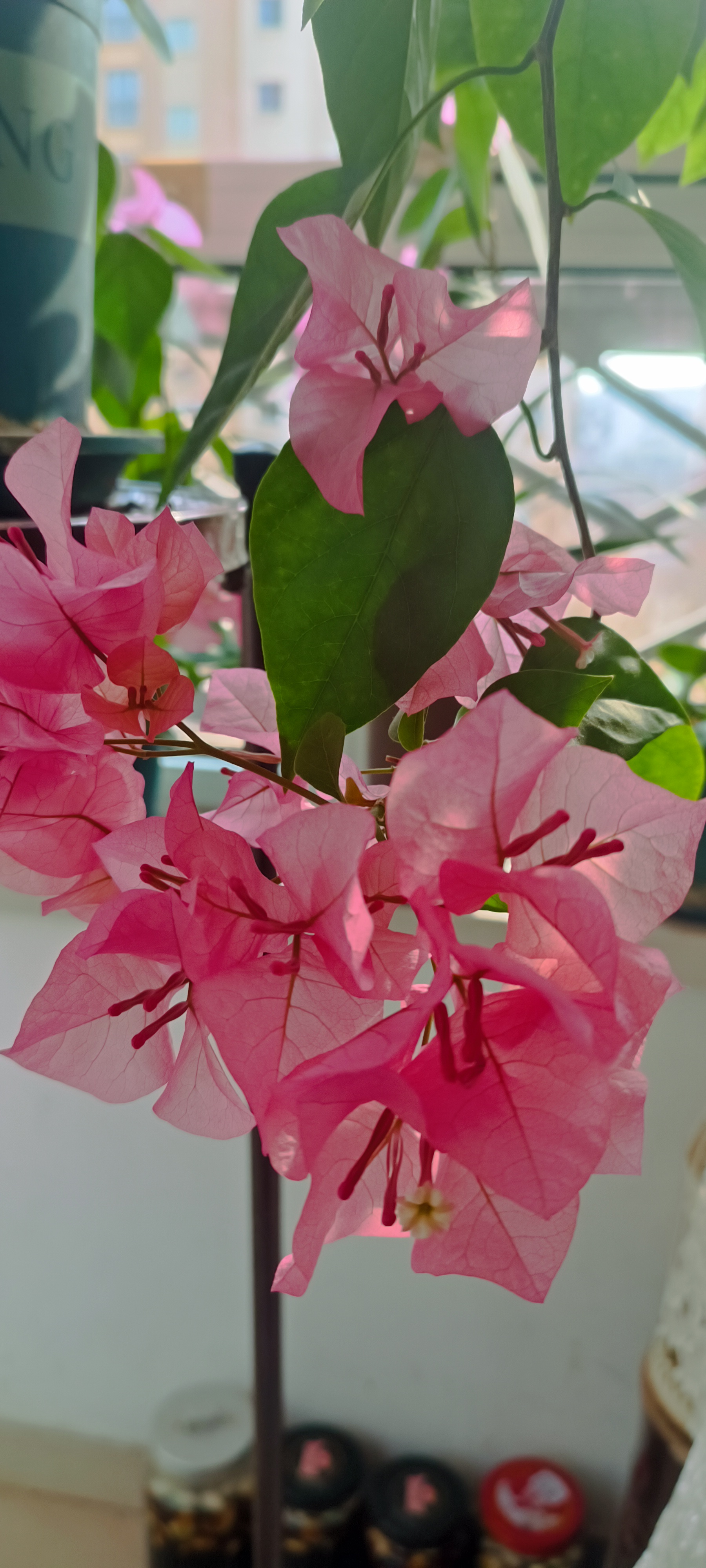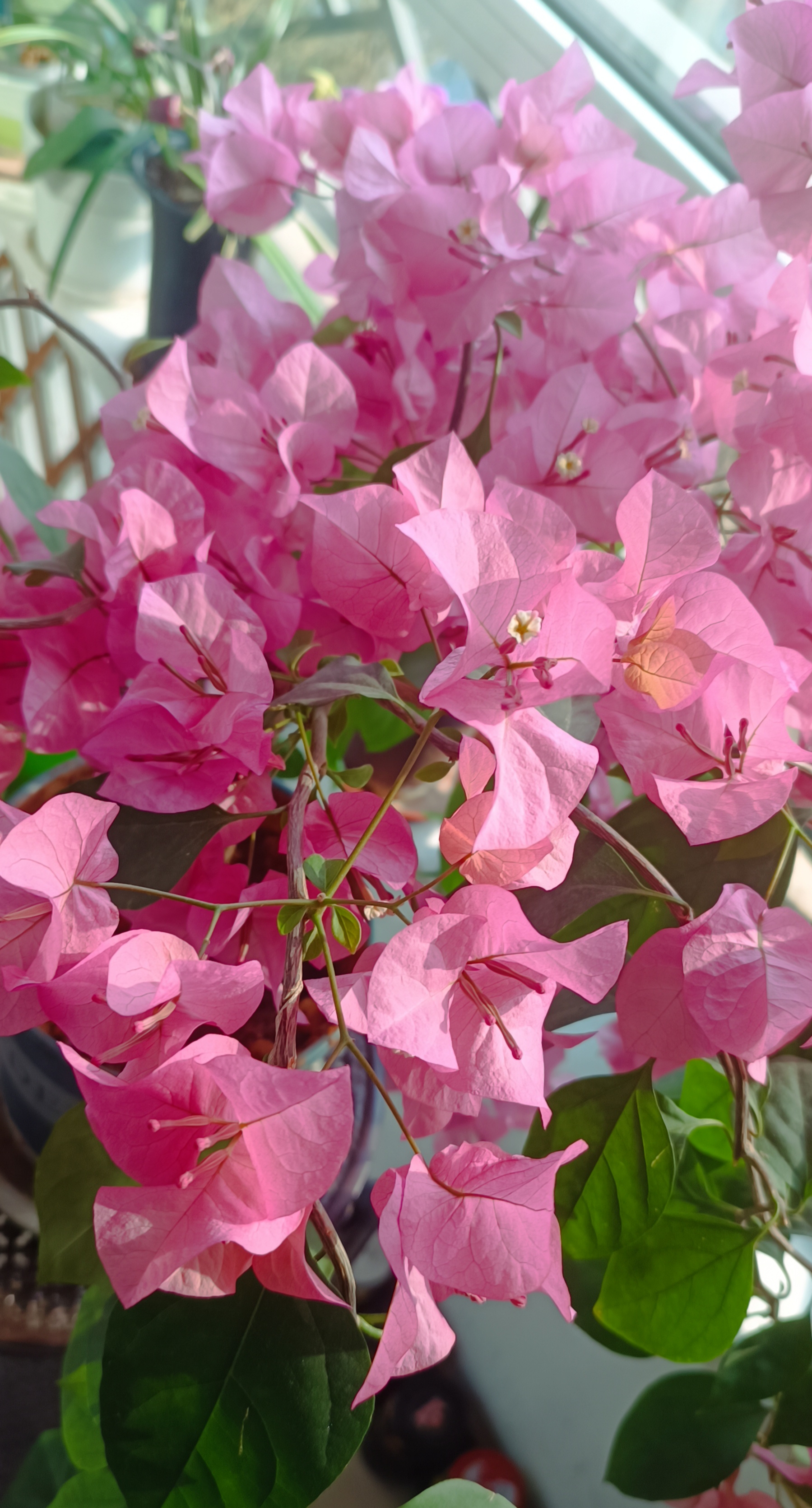 三角梅爆花的快乐。 2025年春天,入手9块钱的三角梅牙签苗(买一赠一),如今,开得热热闹闹。 初试造型(悬垂式&高飘式),快乐多多。