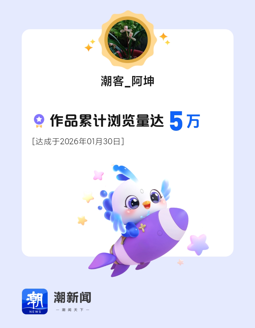 我在潮新闻发表的作品累积浏览量突破5万!