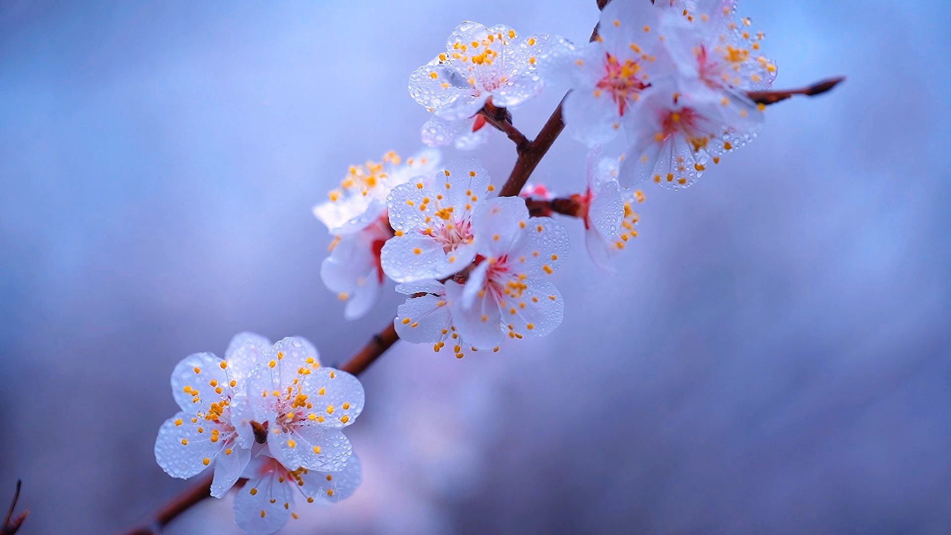 赤峰市天气回暖,初春的山杏花,在雾气氤氲中,凝满露珠,绽放着最美的春色!