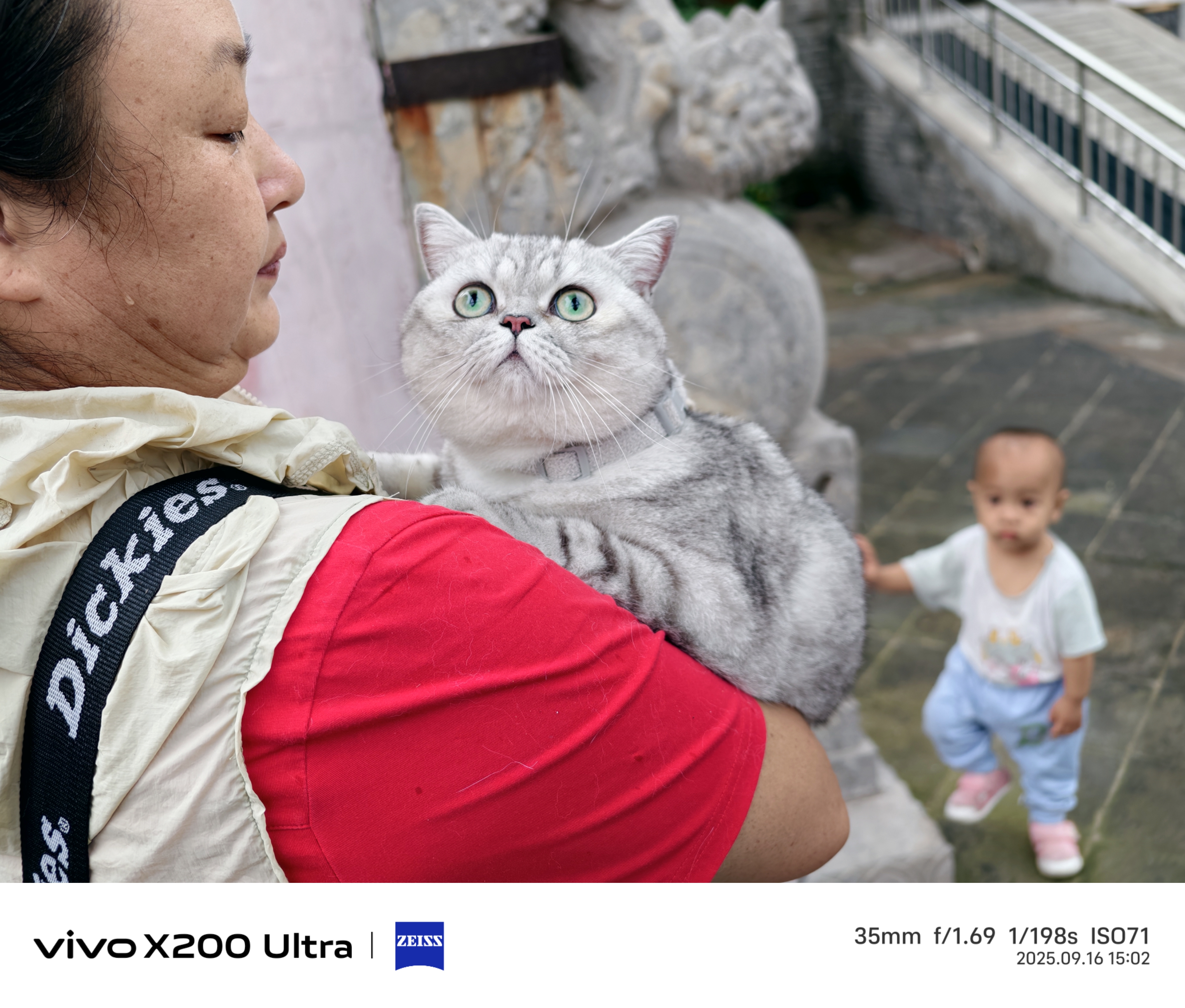 《小可爱》带着猫孩子去旅行,它爬着身上左顾右盼一副呆萌样子。