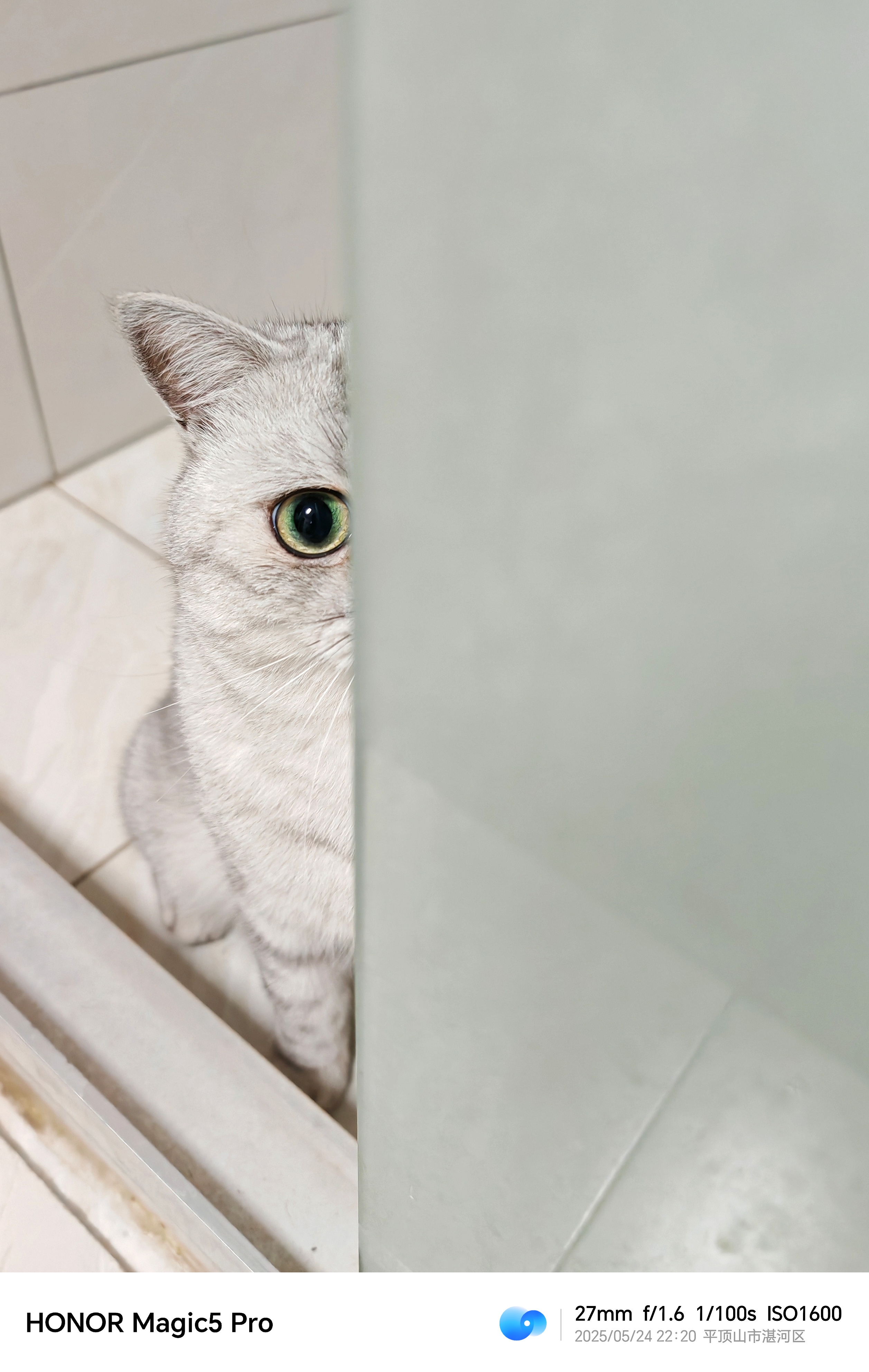 《躲猫猫》有点小心思的毛孩子躲在浴室门后面。