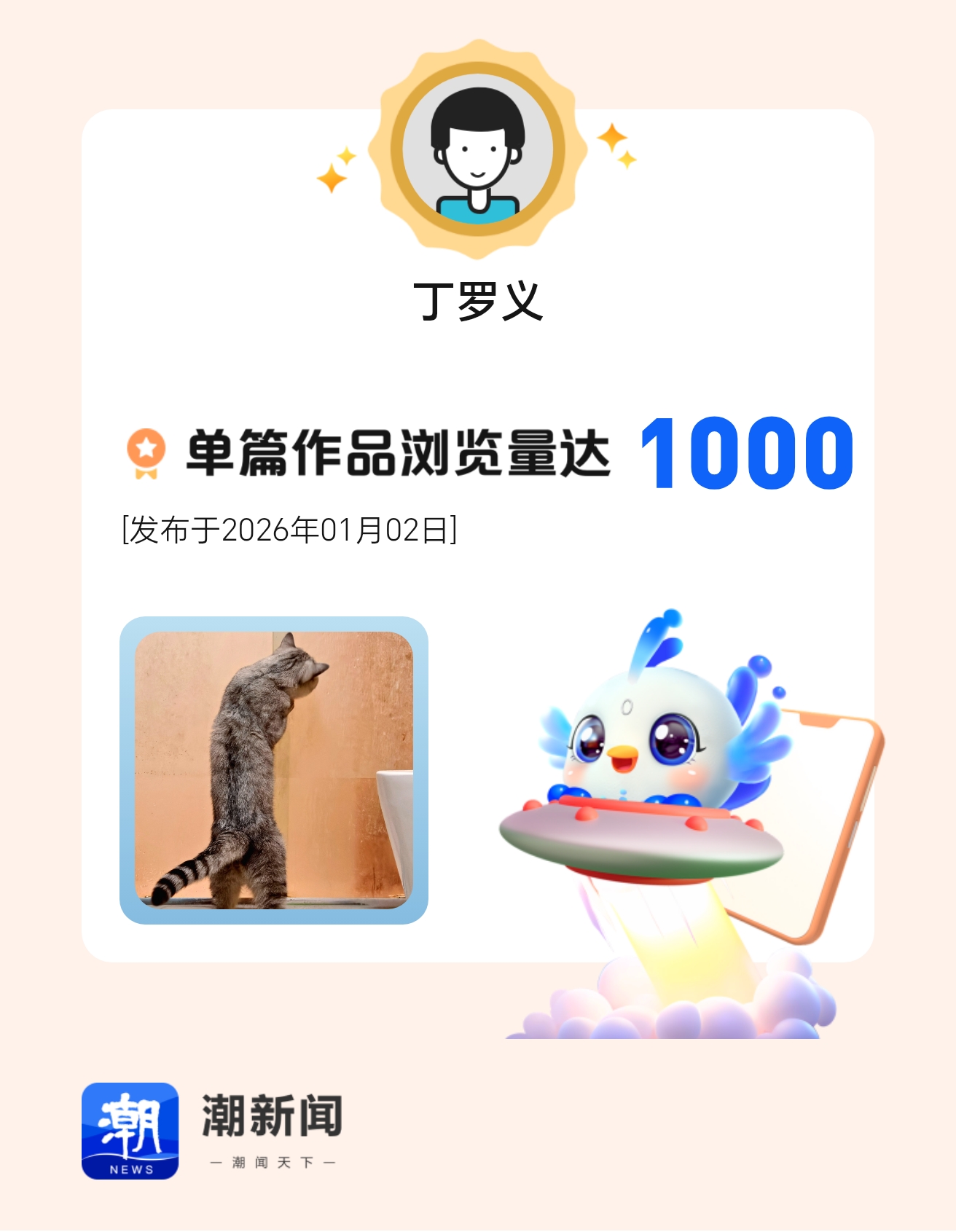 我在潮新闻发表的单篇作品浏览量达到1000!