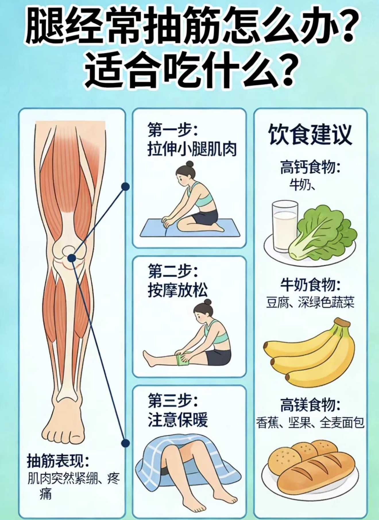 腿总抽筋,别只补钙,缺镁同样会引起抽筋。 镁能调节肌肉收缩与放松,摄入不足,肌肉就容易痉挛。 日常补钙的同时可以多吃这些高镁食物: - 谷类:荞麦面、玉米等 - 豆类:黄豆、黑豆等 - 蔬菜:深绿色蔬菜、芥菜 重点介绍下 紫菜,每100克含镁约460毫克,被称为“镁元素的宝库” - 其他:蛋黄、牛肉、猪肉、河鲜等 坚持合理搭配饮食,很多夜间腿抽筋都能慢慢缓解。
