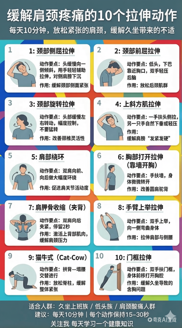 10个缓解肩颈疼痛的动作! #正确的运动方式 #拉伸 #缓解肩颈疲劳 #缓解颈椎压力