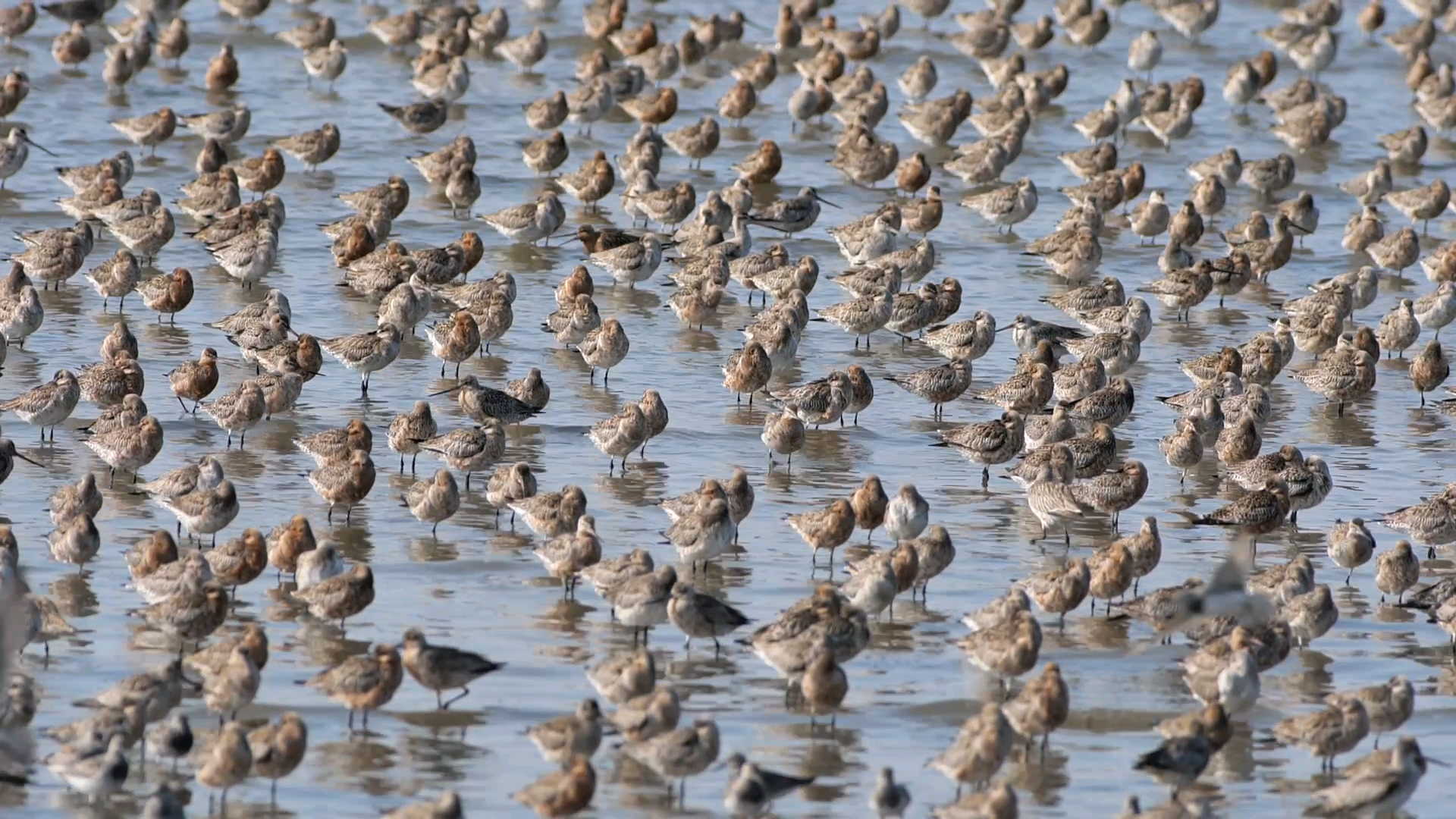辽宁东港鸭绿江口湿地第一轮鸟浪震撼来袭 2026年3月20日每年三月份下旬,辽宁省东港鸭绿江口湿地来自澳洲的迁徙鸻鹬类水鸟陆续抵达翔集。几万只鸟飞起来形成鸟浪,场面震撼,吸引游人观赏