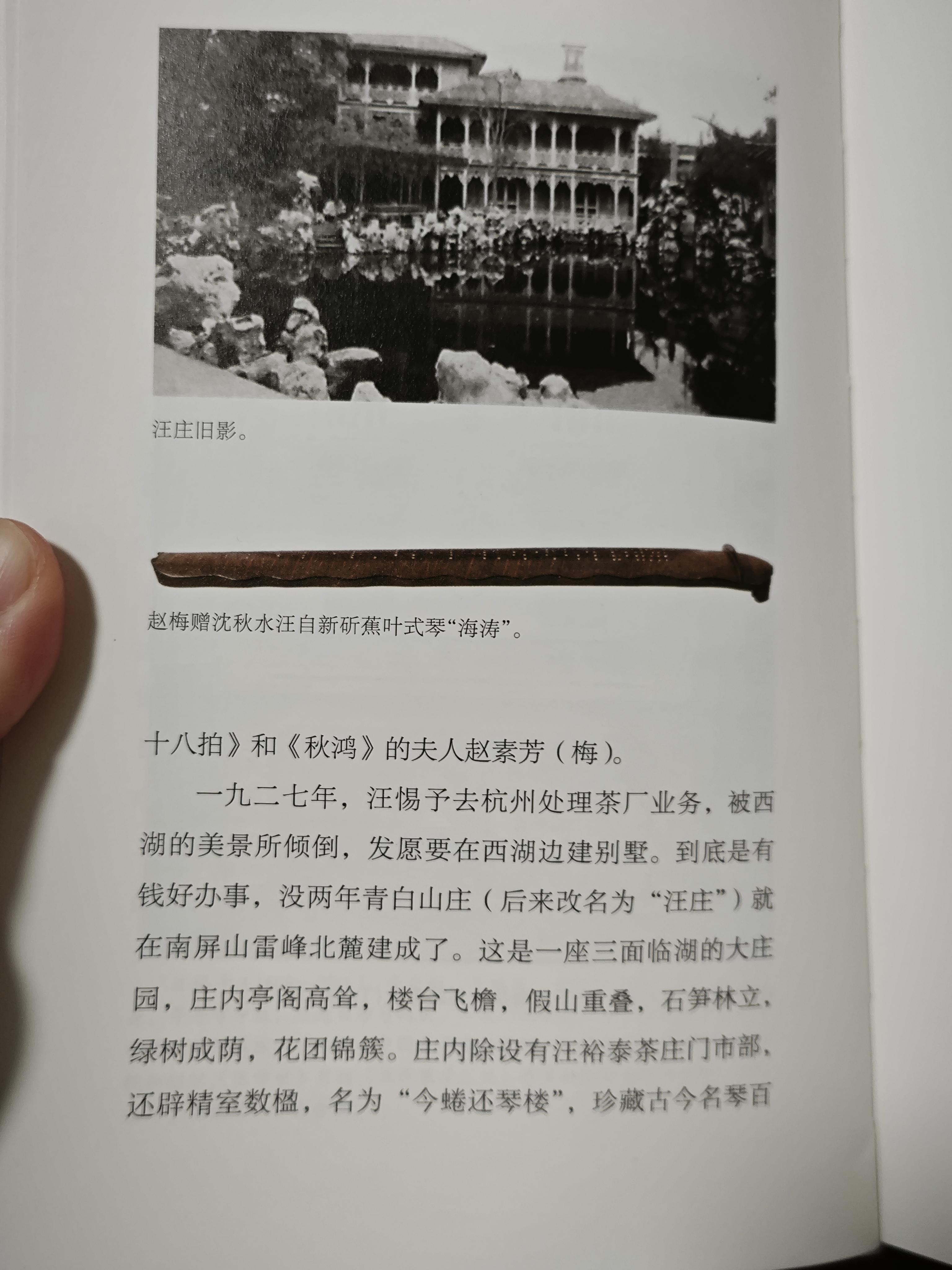 汪庄锯琴声在骨, 秋水焚弦影留痴。 聆音察理人何在? 唯有西湖月如初。 西湖边的两种琴心 读《近世古琴逸话》,最令我动容的并非琴艺本身,而是两则与杭州园林有关的故事——汪庄与秋水山庄。一座在雷峰塔下,一座在葛岭山麓,两位主人,两种琴心,却共同构成了西湖边最动人的琴韵。 汪庄的主人汪自新,是位卖茶起家的徽州商人,却被时人称为“琴痴”。他在南屏山下筑“今蜷还琴楼”,藏琴五百、墨拓五百,辟“琴巢”以贮之。1929年西湖博览会上,他拿出唐琴“天籁”参展,被人指为赝品。为证清白,这位年过六旬的老人,竟当众锯开千年古琴,露出紫黑的“楸梓”琴底——琴毁了,名声保住了。这份“痴”,是文人对器物之真的执拗。 而秋水山庄的故事,则是另一种“痴”。史量才为爱妾沈秋水筑此园,汪自新曾赠“耳通”“海涛”一对古琴,寓意琴瑟和鸣。1934年史量才遇刺,灵堂之上,沈秋水白衣素服,弹奏一曲《广陵散》,曲终弦断,她将琴投入火盆——广陵一曲,知音于今绝矣。