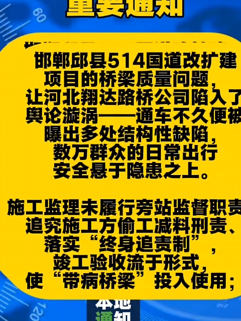 邯郸市邱县514国道桥梁不容“带病上岗”,质量责任必须终身制