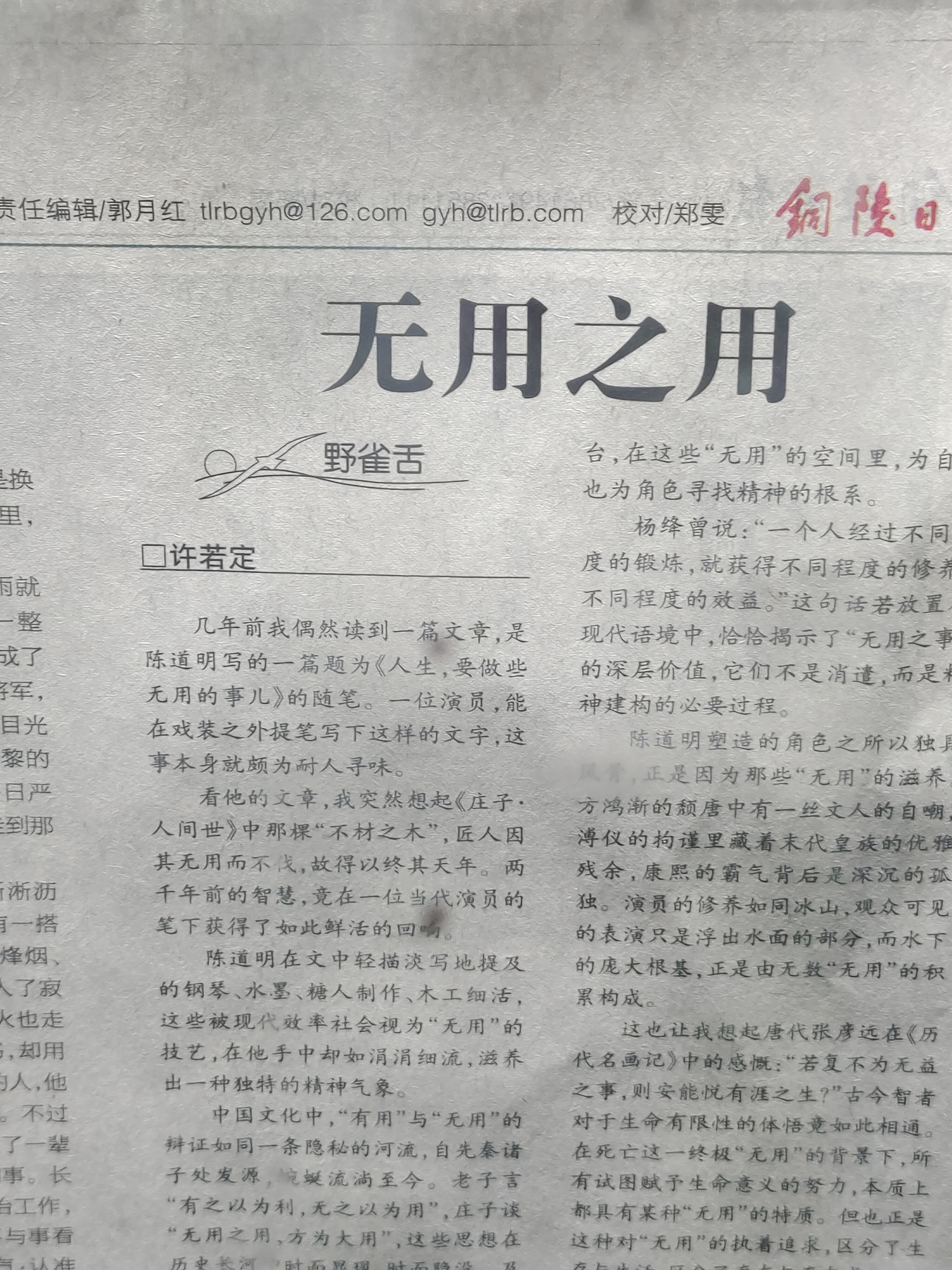 铜陵日报副刊邮箱展示! 关注《桥东文学》公众号,全国各地报纸副刊邮箱公开分享。
