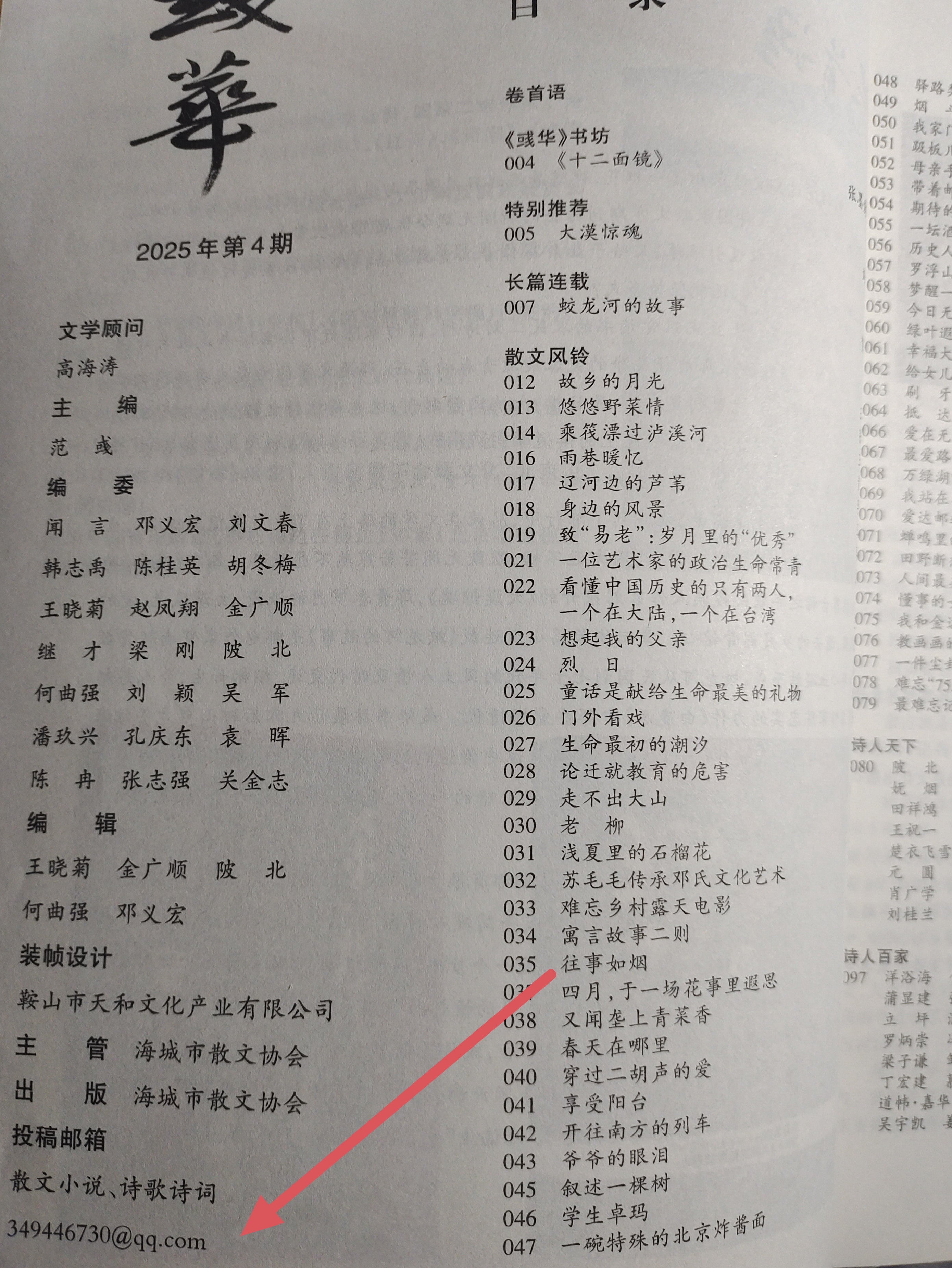海城散文学会内刊。有文友可投,无稿费有样刊,附邮箱。(请关注《桥东文学》报副刊,内刊杂志邮箱免费展示)