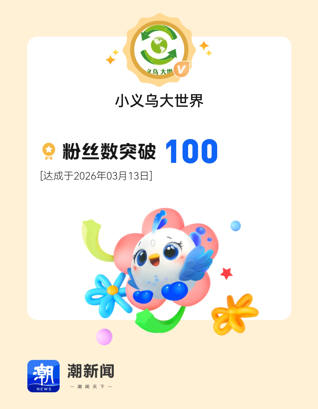 我在潮新闻已收获粉丝100,来我的主页看看吧!