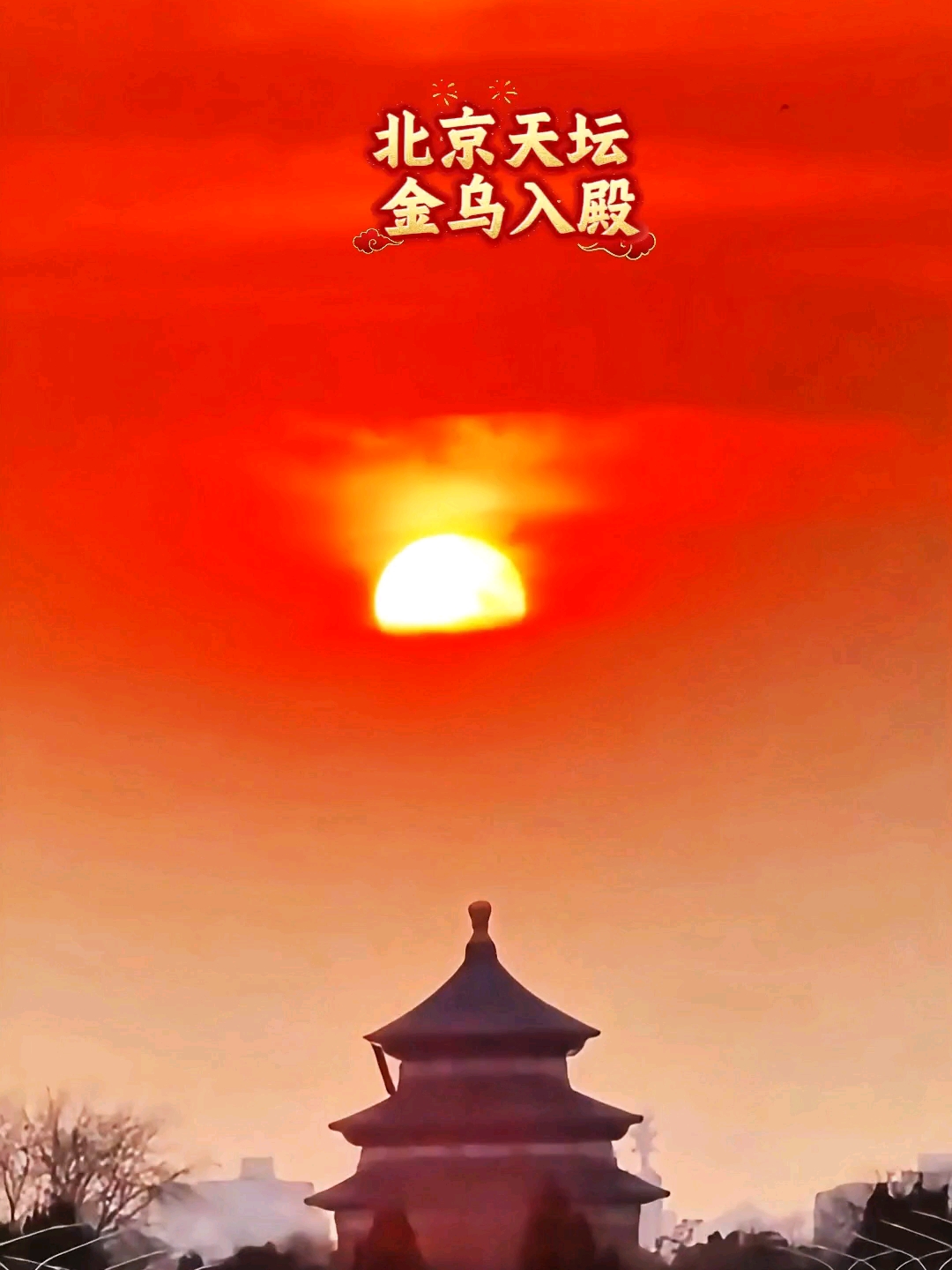 北京天坛一年一次金鸟入殿 二月二,龙抬头,赤日西倾, 落于天坛飞檐之上。 古殿朱红承晖,金乌欲入殿中。 车马喧尘里,暮色染尽京华, 是天地交泰,亦是龙气初生。 圆日如丹,悬于层檐之间, 金辉漫过朱甍碧瓦, 古都暮色温柔,恰似千年一顾。 二月二龙抬头,落日金辉恰好 填满天坛祈年殿的檐角,