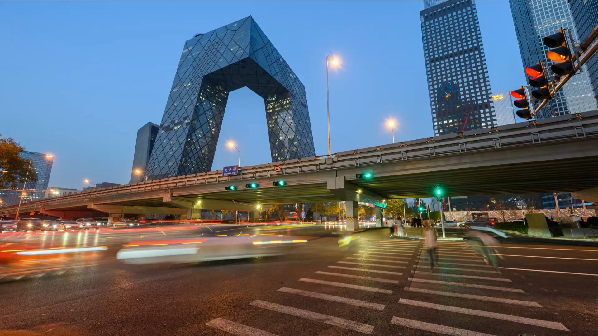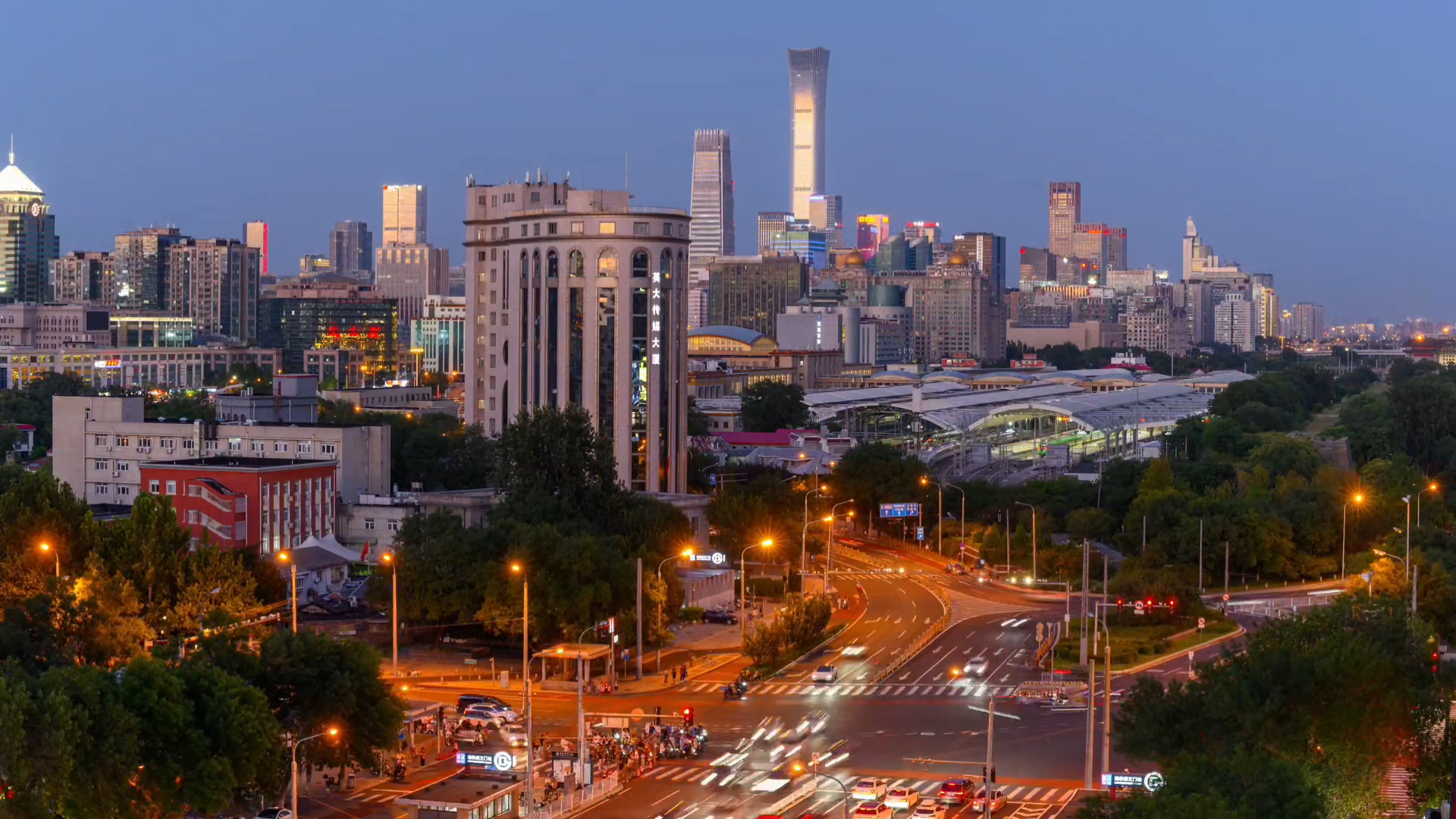 有人说,白天的国贸是奋斗场,夜晚的国贸是科幻片。站在这个车流如河的路口抬头看——央视大楼像一座未来雕塑,撕裂夜空;车灯拉成金红色的光带,穿梭在楼宇的峡谷之间。信号灯闪烁,行人匆匆,这座城市从未真正入睡。