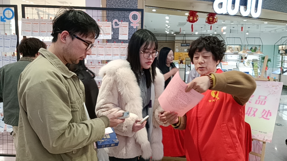 心动周末|一周三场,相亲角的春天来得有点猛 刚刚过去的一周,长兴的公益相亲角忙得脚不沾地。 从元宵节的灯火阑珊,到九汇城的人头攒动,再到市民广场的周末相约——三场活动,三个夜晚,红娘们手里的登记表写满了一页又一页。 3月3日晚元宵夜,东鱼坊张灯结彩,糖画、花灯、戏曲把老街挤得满满当当。县妇联的公益相亲角也悄悄“混”进了非遗队伍里。非遗的烟火气里,找对象这件事变得像逛灯会一样自然——不着急,慢慢来,遇见了就是缘分。 九汇城那晚,还没到七点,展板前已经围了一圈人。最积极的是一群父母。有位大叔攥着儿子的信息卡,在展板前站了快半小时,角落里,一位妈妈正细细翻看男生的资料,不时抬头咨询男生信息,还有几个小姐妹结伴而来,填表的时候互相打趣,笑声里,红娘们的笔没停过。 3月8日,妇女节,市民广场的相亲角照样出摊。有一位小伙子是提前约好了赶过来的。不远处,一对母女正凑在资料前细声商量。 三场活动,只是长兴公益相亲角的日常。每周,红娘们都会准时出现在九汇城、市民广场——只要你来,她们就在。 找对象这件事,急不得,也等不来。但多一个地方遇见,就多一分可能。下周,相亲角继续营业,咱们老地方见。