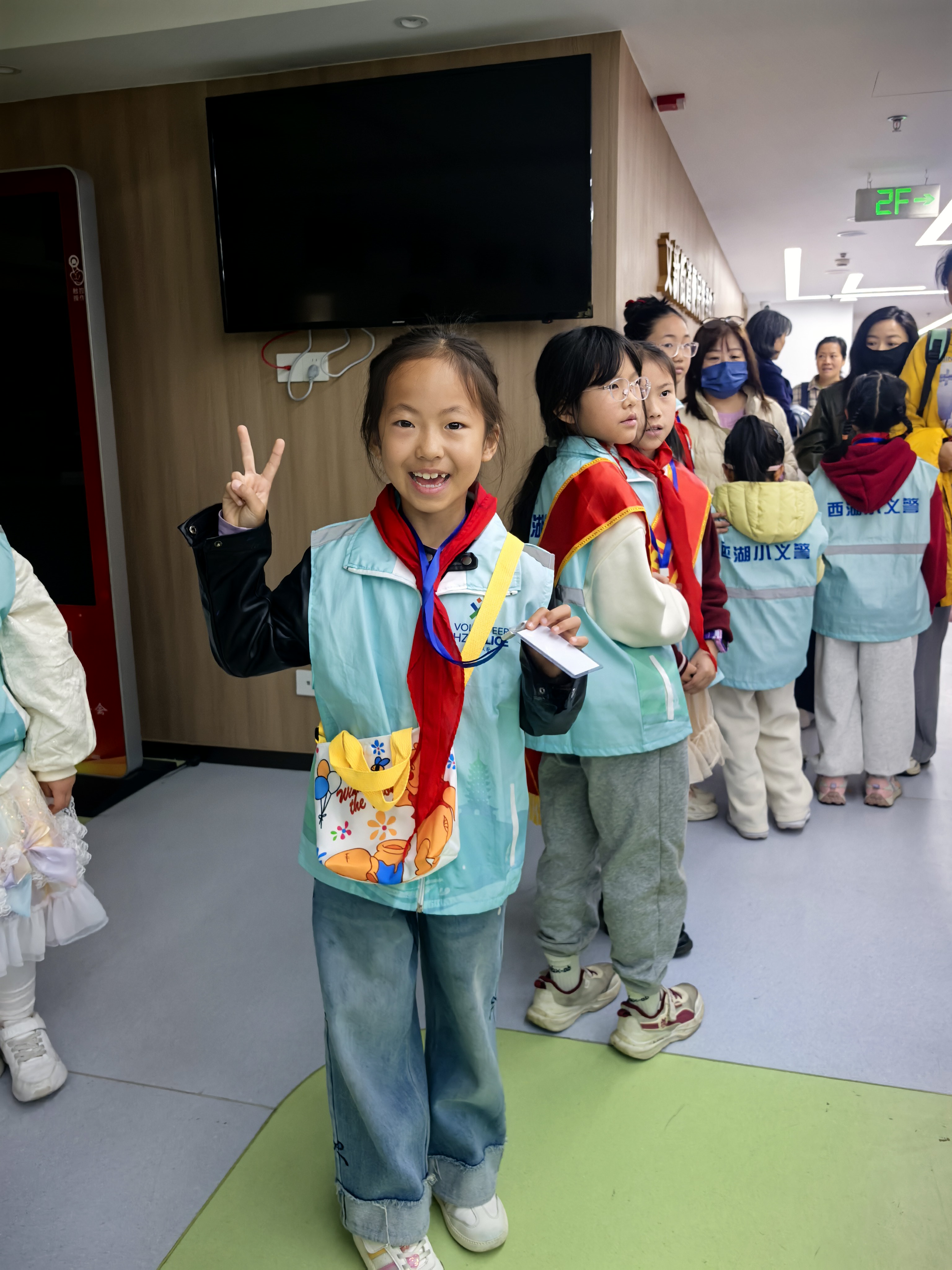 今天我穿上白大褂,变成了一名超酷的“小小眼科医生”! 在浙江大学医学院附属眼耳鼻喉科医院里,医生老师用有趣的动画给我们讲眼睛的秘密,我知道了角膜、视网膜这些“小零件”是怎么帮我们看世界的,还学到了干眼症会让眼睛又干又痒,原来长时间玩手机真的会伤害眼睛! 我还亲手给小伙伴测了视力,指着视力表上的“E”字,像模像样地当起了“小医生”。手工课上,我用彩色扭扭棒做了一副独一无二的眼镜,戴在脸上特别神气! 最后,我拿到了“小小眼科医生”的荣誉证书,心里美滋滋的。这次体验让我明白,眼睛是我们的“小窗户”,以后我要好好爱护它,还要提醒爸爸妈妈和同学一起科学护眼! 杭州公益小天使:查思妍