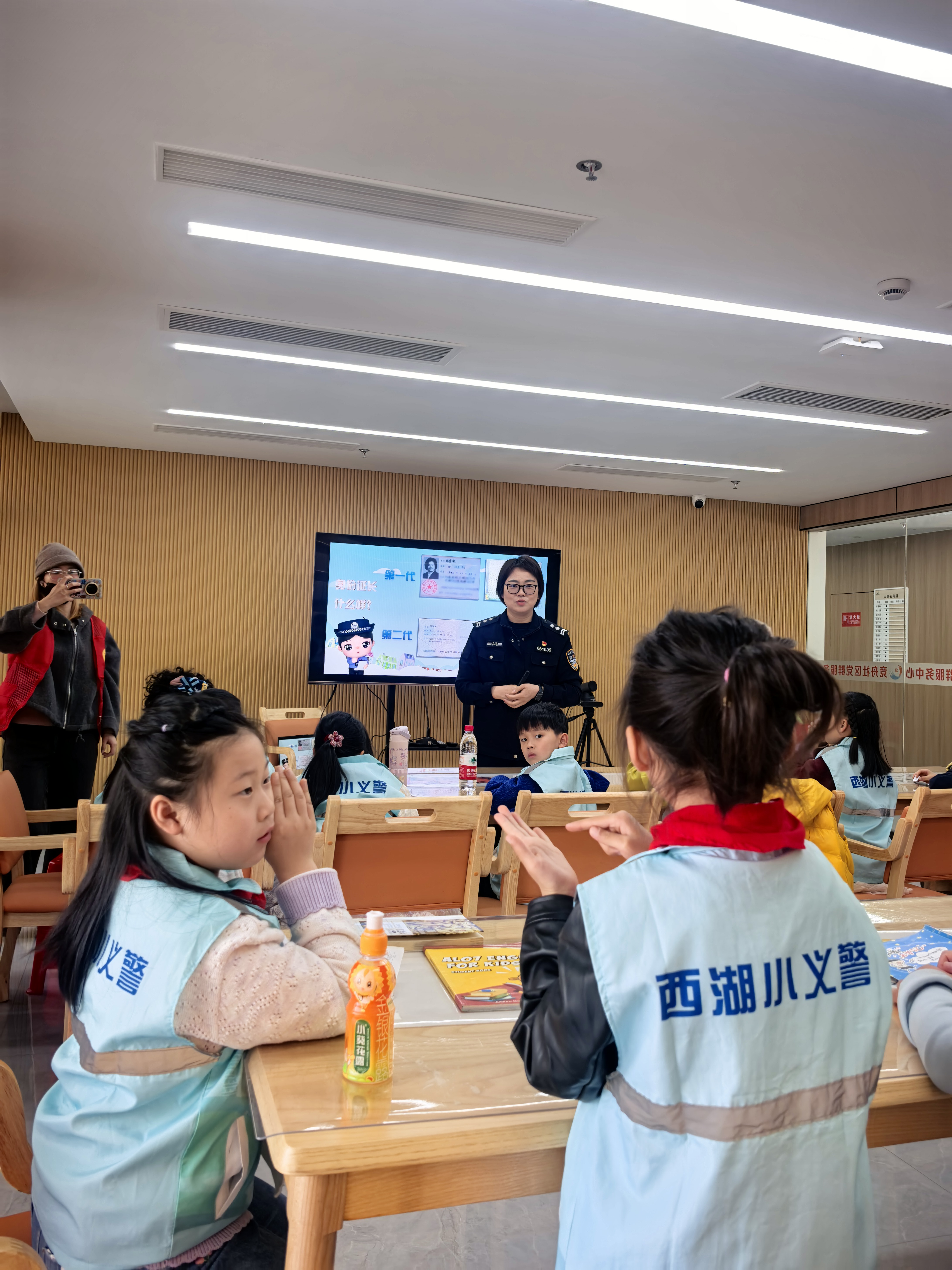 今天,我有幸在文新街道便民服务中心参加了文新派出所举办的“西湖小义警,平安小天使”活动,收获满满,感触良多。 活动最后,我们和民警阿姨一起举着横幅合影,“西湖小义警,平安小天使”的红色标语格外醒目。这不仅是一张照片,更是一活动中,文新派出所的民警阿姨用生动有趣的方式,为我们讲解了身份证和护照的知识。从证件的种类、用途,到如何安全保管和使用,每一个知识点都让我大开眼界。我第一次知道,原来护照不仅是出国旅行的凭证,更是我们在海外寻求帮助的重要身份证明;也明白了身份证里藏着这么多关于身份信息的安全细节。课堂上,大家积极举手提问,民警阿姨耐心解答,让原本严肃的知识变得通俗易懂,我听得格外认真。 次成长的见证。通过这次活动,我不仅学到了实用的安全知识,更懂得了“小义警”身上肩负的责任。未来,我要把今天学到的知识分享给更多人,用自己的小小力量,为平安西湖贡献一份光和热! 杭州穿上“西湖小义警”的马甲,我仿佛多了一份责任与担当。我们不仅是知识的学习者,更是平安的宣传员。在互动环节,我和小伙伴们一起上台分享学习心得,用稚嫩的声音传递着守护身份安全的理念。看着屏幕上可爱的卡通警察形象,我更加坚定了要做一名“平安小天使”的决心——不仅要保护好自己的证件信息,还要提醒身边的家人和朋友,共同维护安全。 杭州公益小天使:查思妍