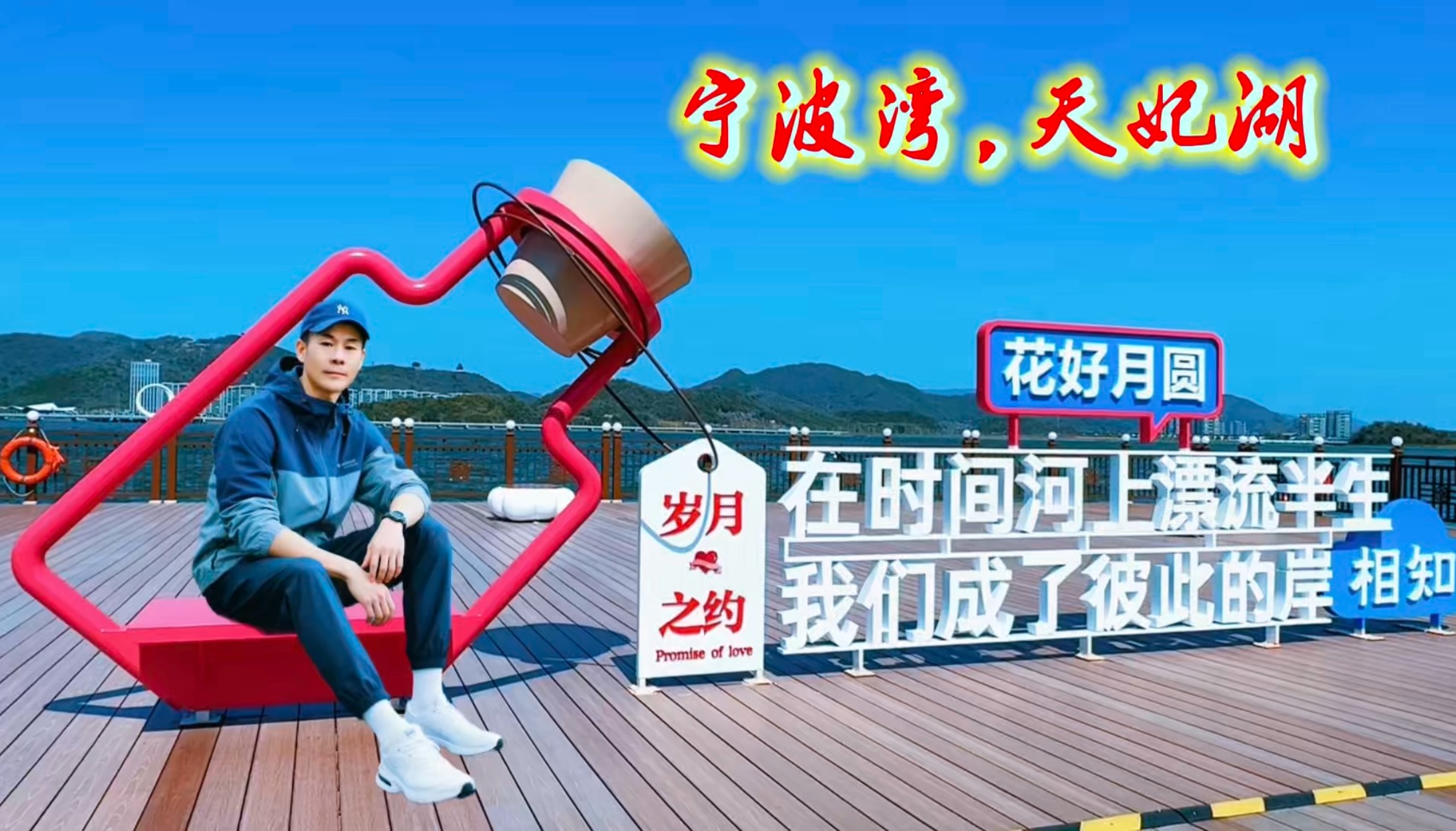 宁波湾,天妃湖乘686公交直达,玻璃海+爱心栈道美到窒息 这就是被称为「宁波小三亚」的宝藏滨海地,玻璃海、爱心栈道、巨型白环雕塑,随手一拍都是治愈系大片! 福桥(爱心廊架) 吉尼斯认证「海上最长可行车浮桥」,全长2703.51米。图中的心形彩虹廊架是福桥的网红C位,阳光穿过廊架形成绝美光影,拍剪影、情侣照都超有氛围感。 天妃之戒(海上生明月) 直径36米的巨型白色圆环雕塑,也叫「生命之环」,镜面材质倒映着蓝天白云与海面,像一枚戴在海上的戒指,是天妃湖的视觉地标,傍晚时分光影更梦幻。 交通指南 公交:坐686路到「宁波湾游客中心」或「天妃大道」站,步行约2公里即可抵达核心景区,全程免费。 自驾:导航「天妃湖旅游度假区」或「红石村(西堤入口)」,停车费10元封顶,从西堤进入可免费直达福桥,避开东堤摆渡车费用。