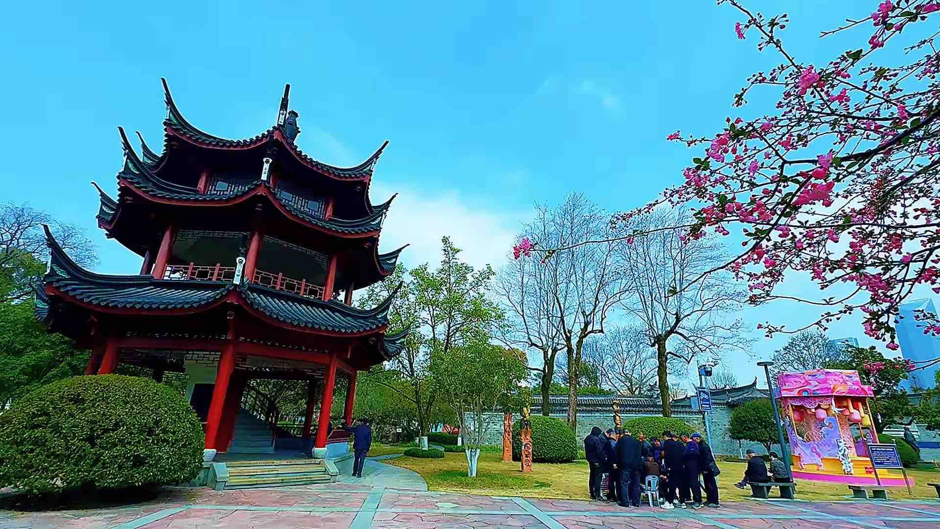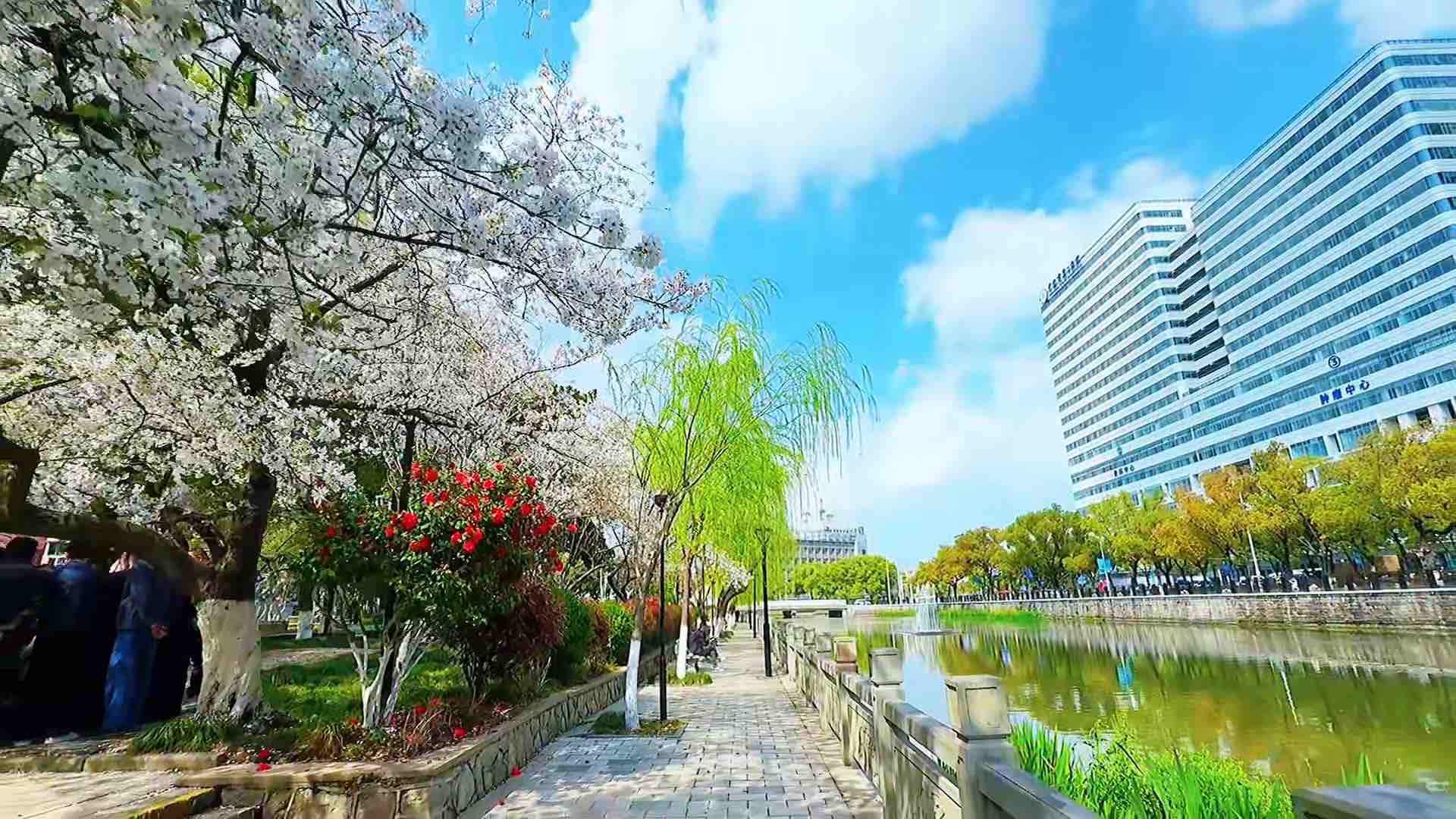 宁波海曙公园大片樱花盛开,和二院同框太治愈!