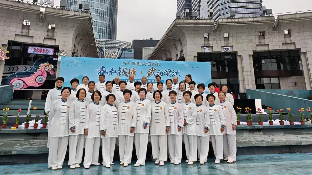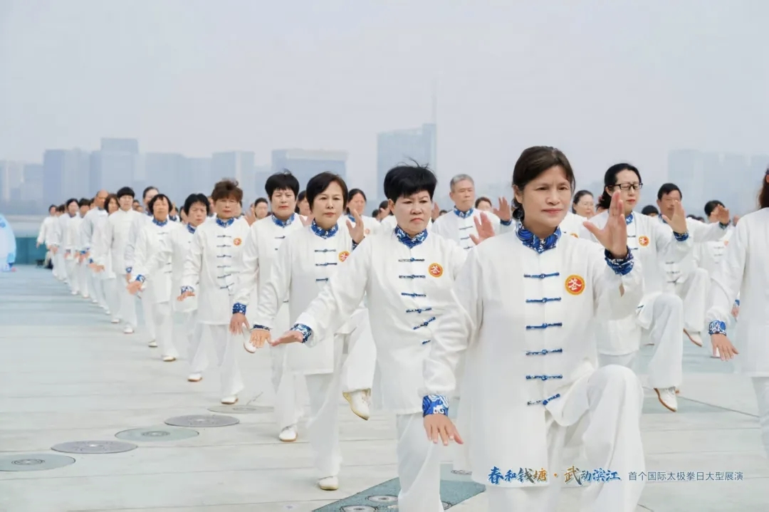 枫采邻里 | 枫华太极社亮相千人展演,武动滨江展风采 在首个“国际太极拳日”来临之际,“春和钱塘·武动滨江”大型展演活动在钱江龙广场盛大举行,丹枫社区枫华太极社的成员们积极参与,以拳会友,尽显风采。 活动现场气势恢宏,江风拂面。枫华太极社的成员们身着统一服装,精神抖擞,与两千余名太极爱好者共同演练八式、八法五步、二十四式太极拳,动作行云流水、刚柔并济,将太极的阴阳平衡之美展现得淋漓尽致。