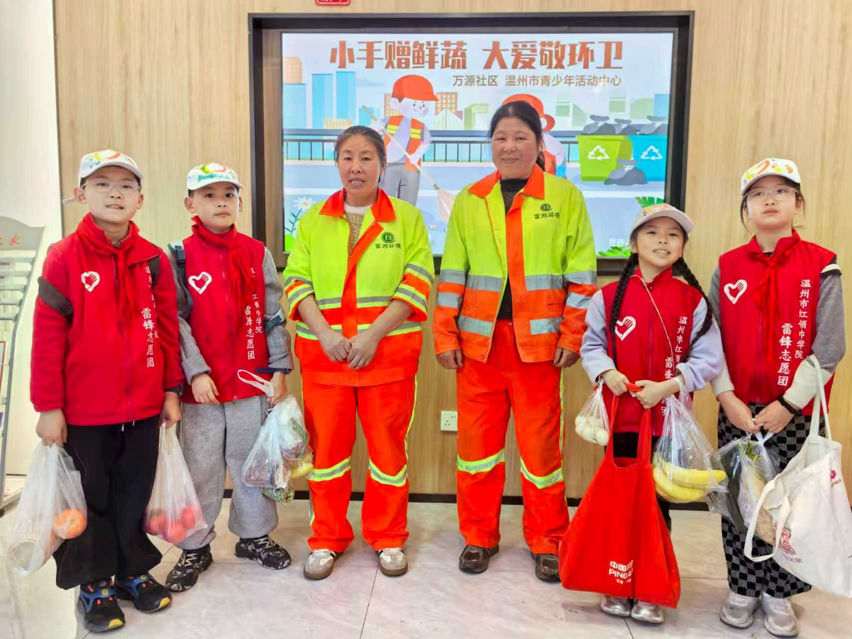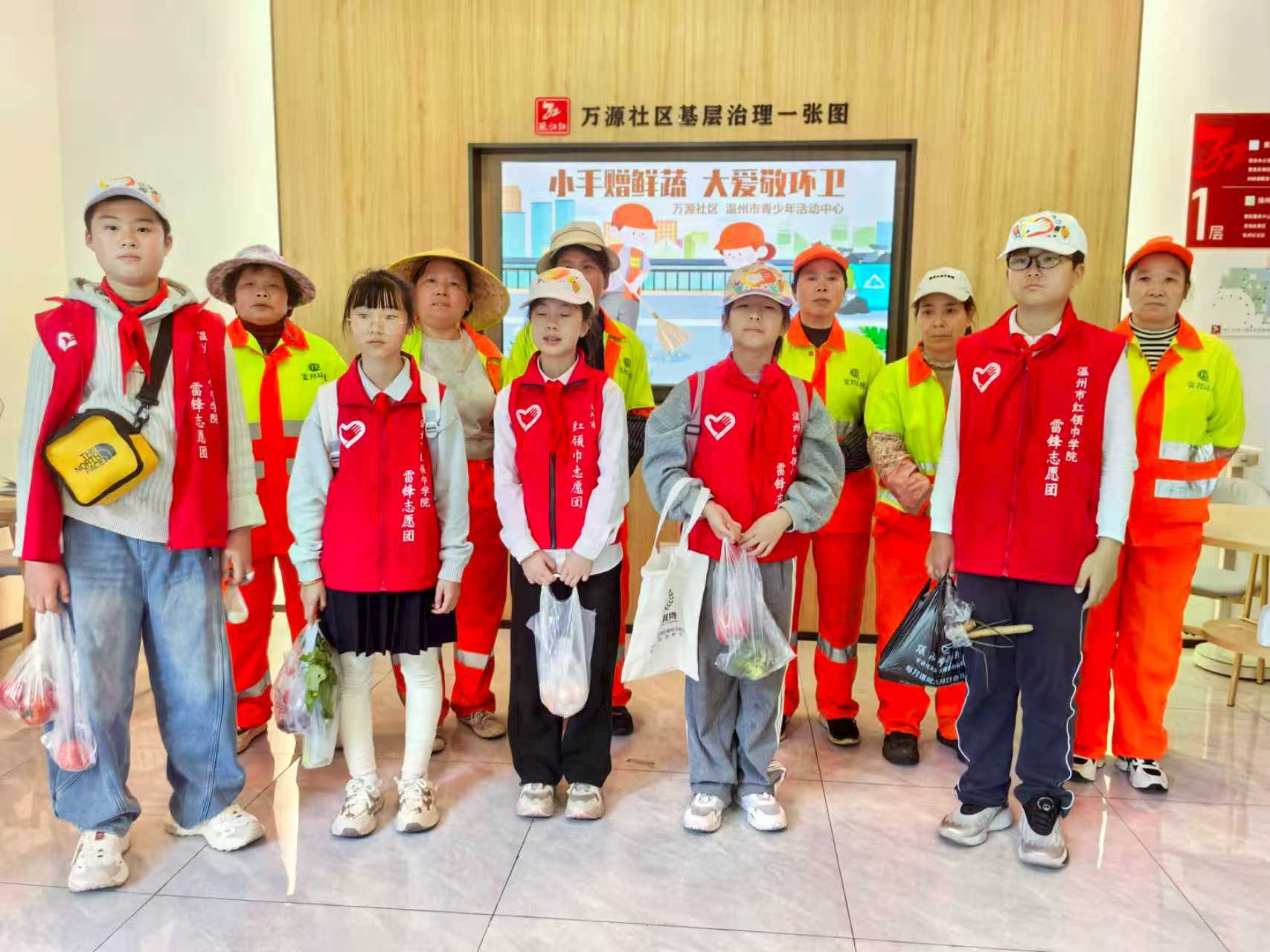 【变废为宝传爱心,童心致敬城市美容师——万源社区联合温州市“红领巾学院”雷锋志愿团开展3月学雷锋志愿服务活动】 为深入贯彻雷锋精神,践行绿色环保理念,3月15日,万源社区新时代文明实践站联合温州市“红领巾学院”雷锋志愿团共同发起了一场别开生面的“绿色循环·爱心接力”活动。活动前期,社区的“红领巾”志愿者们化身“环保小卫士”,利用课余时间主动收集家中的废旧报纸、纸箱、空塑料瓶等可回收物。孩子们没有依赖大人的帮助,而是自主联系回收渠道,将积攒的“宝贝”直接变现。这一过程不仅让孩子们亲身体验了垃圾分类与资源再生的意义,更让他们明白了“垃圾是放错位置的资源”,用小小的举动汇聚起守护地球的绿色大能量。 孩子们拿着通过自己双手劳动换来的“第一桶金”,孩子们脸上洋溢着自豪的笑容。在大学生志愿者和家长的陪同下,他们走进菜市场,化身为精明的“小当家”。大家精打细算,精心挑选了新鲜、健康的蔬菜和水果,并亲手绘制了充满童趣的感谢卡,将一份份沉甸甸的“爱心蔬菜包”准备就绪。从卖废品到买菜,每一个环节都由孩子们主导。这种“取之有源,用之有爱”的方式,让孩子们深刻体会到:每一分钱都来之不易,而用自己辛勤劳动的成果去帮助他人,更是无比光荣和幸福的事情。 下午,身穿红马甲的“红领巾”志愿者们来到社区,将承载着环保心意与童真祝福的蔬菜包送到了正在辛勤作业的环卫工人的手中。此次活动不仅为环卫工人送去了实实在在的关怀,更在孩子们心中种下了“尊重劳动、爱护环境、乐于助人”的种子。 万源社区与温州市“红领巾学院”雷锋志愿团通过这种“环保+公益”的创新模式,让雷锋精神在新时代少年的自主行动中焕发出新的光彩,共同绘就了一幅“小手拉大手,文明一起走”的温馨画卷。