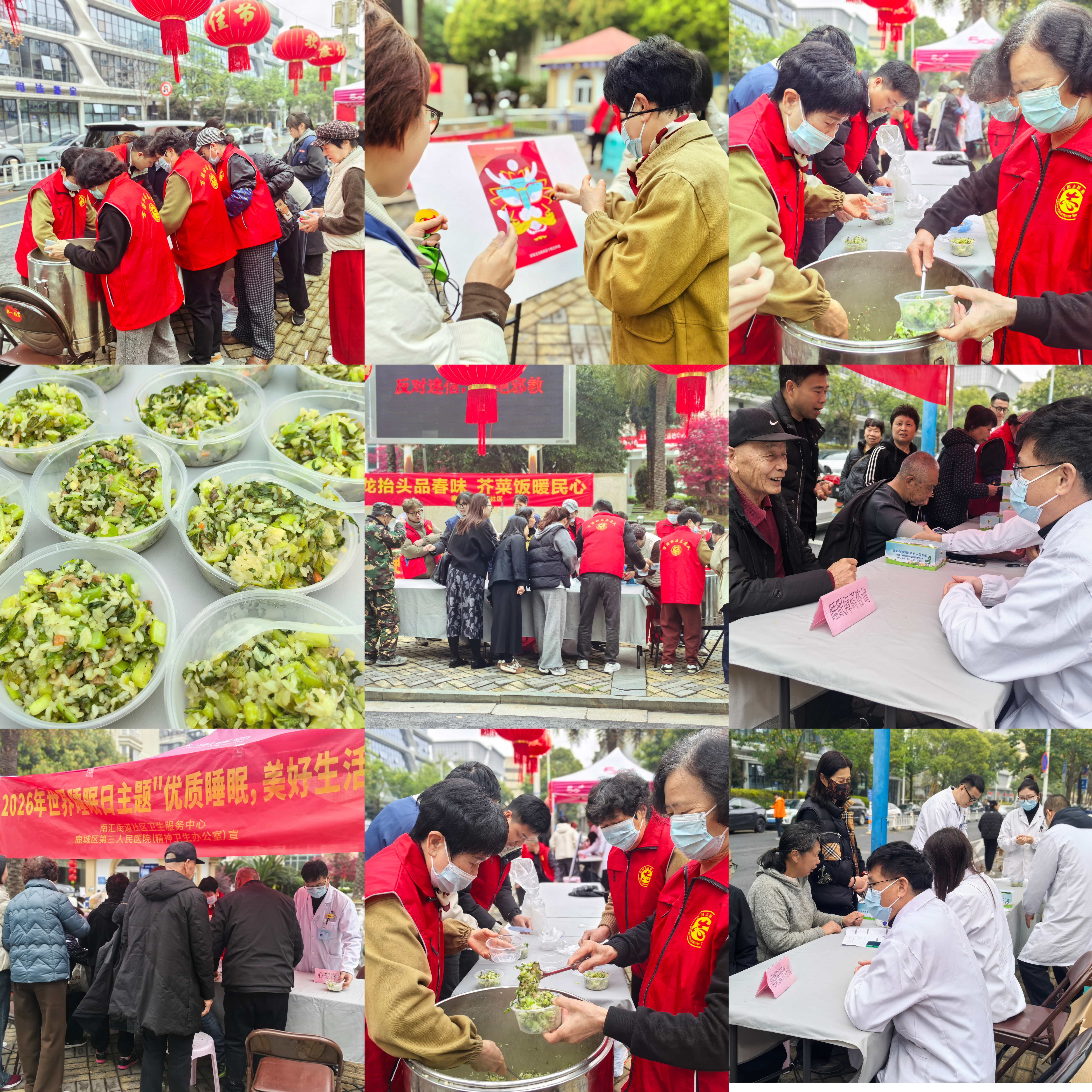 【二月二龙抬头 良辰共启健康年——万源社区举办民俗体验与健康义诊活动】 农历二月二“龙抬头”,春风送暖、民俗飘香。为传承中华优秀传统文化,把健康关怀送到居民家门口,万源社区于3月20日上午8:00,在上田小区南门口举办“二月二龙抬头·良辰共启健康年”主题活动,以民俗体验+健康服务的形式,与邻里共迎吉祥、同享安康。 活动现场暖意融融、热闹有序。社区精心准备了传统芥菜饭,让居民在烟火气里品味民俗、讨取“一年好兆头”的吉祥寓意。趣味互动环节中,画龙点睛游戏吸引大人小孩踊跃参与,大家提笔添彩、笑语连连,在互动中感受龙抬头的文化意涵,寄托对新一年的美好期盼。 健康服务专区同步暖心开启。现场提供免费血压测量,并开展睡眠健康科普与咨询,医护与志愿者耐心答疑、细致讲解,为居民普及春季养生、睡眠调理、慢病防护等实用知识,把健康指导送到居民身边。 此次活动将传统民俗与便民服务有机结合,既弘扬了节日文化,又拉近了邻里情谊,更把健康关怀落到实处。居民们纷纷表示,活动接地气、有温度,既感受到传统节日的氛围,也收获了实用的健康服务。 下一步,万源社区将继续以居民需求为导向,常态化开展形式多样的文化活动与便民服务,不断提升居民的获得感、幸福感与归属感,共建温馨和谐的美好家园。