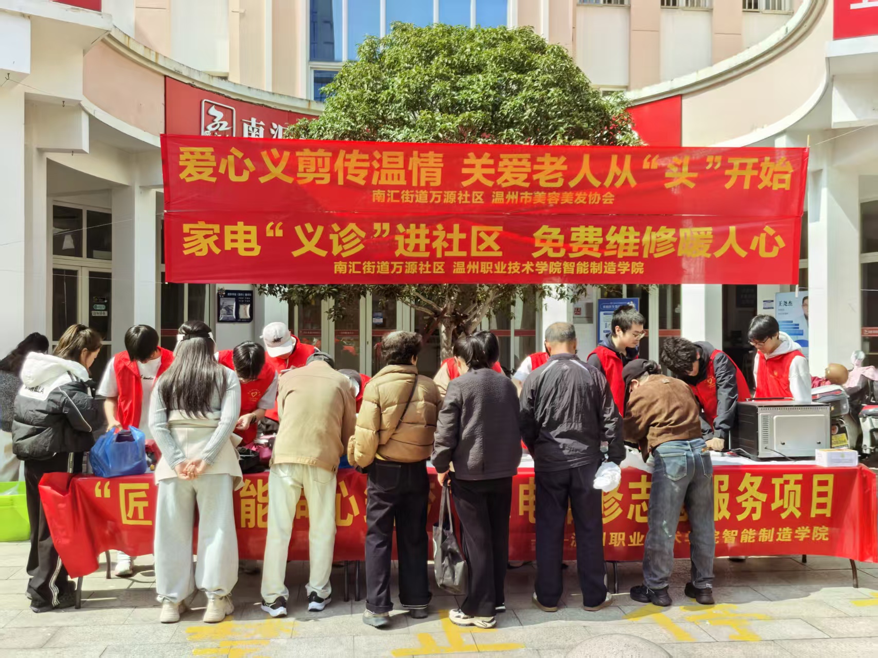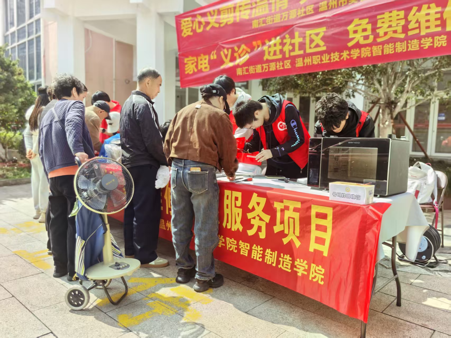 万源社区小家电公益维修服务活动暖民心 为聚焦辖区居民日常生活所需,弘扬志愿服务精神,推动便民服务精准落地,社区精心组织免费家电维修活动,把贴心服务送到居民家门口。3月25日下午,上田小区22幢一楼的万源社区党群服务中心内暖意融融,一场以“让闲置重生,为生活省电”为主题的小家电公益维修服务在此顺利开展。活动吸引了众多社区居民携家电前来参与,现场秩序井然、人气十足。 本次服务于13:30准时启动,来自温州职业技术学院智能制造学院专业志愿者团队早早就位,为居民提供免费维修支持。针对居民带来的电饭煲、电风扇、电水壶等常见小家电,志愿者们耐心排查故障、细致拆解检修,凭借扎实的专业技能和认真负责的态度,高效完成维修工作。对于无法修复的家电,志愿者也贴心告知原因,并给出合理的处理建议,真正做到“应尽尽修”。 活动现场,居民们有序排队等待,不少人趁着维修间隙与志愿者交流家电日常保养知识。“家里这个风扇坏了好久,扔了可惜,修修又能接着用,太感谢社区了!”一位居民拿着修好的家电,脸上满是喜悦。此次公益维修不仅为居民解决了生活小烦恼,更让闲置家电重新发挥价值,践行了绿色低碳的生活理念。