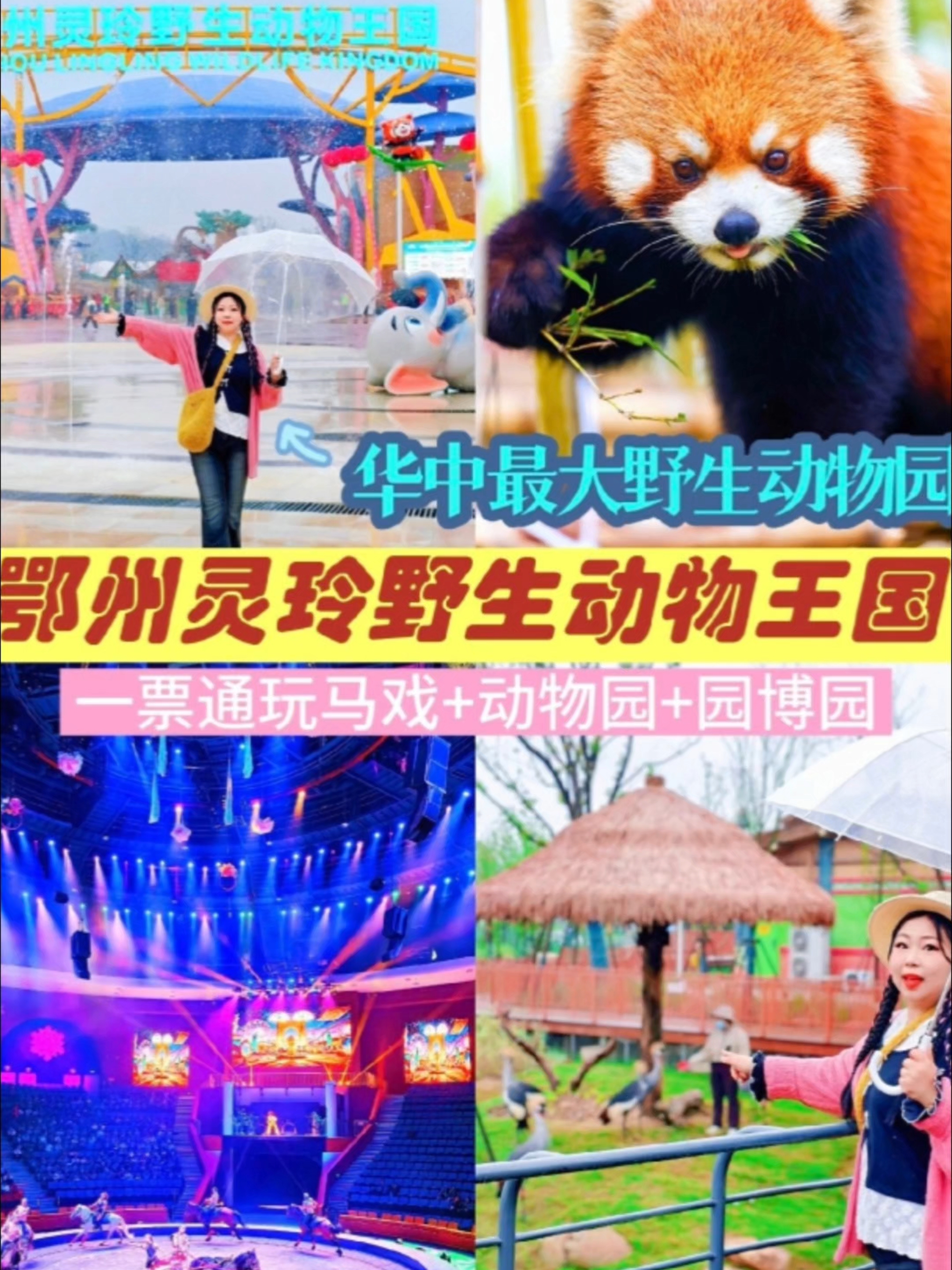 鄂州灵玲野生动物王国,一票玩双园+大马戏 鄂州灵玲野生动物王国也太好玩了吧! 一进门斑马、火烈鸟、长颈鹿全在线,氛围感拉满! 必冲华中最大小熊猫部落!能近距离贴贴,小家伙主动凑过来撒娇,心都化了! 16国艺术家国际大马戏免费看!360度全景舞台,空中特技、小丑互动,有欢乐唯美,有惊险刺激,全程高能尖叫! 5.8公里自驾区,斑马奔跑、羊驼贴贴,还能坐小火车!