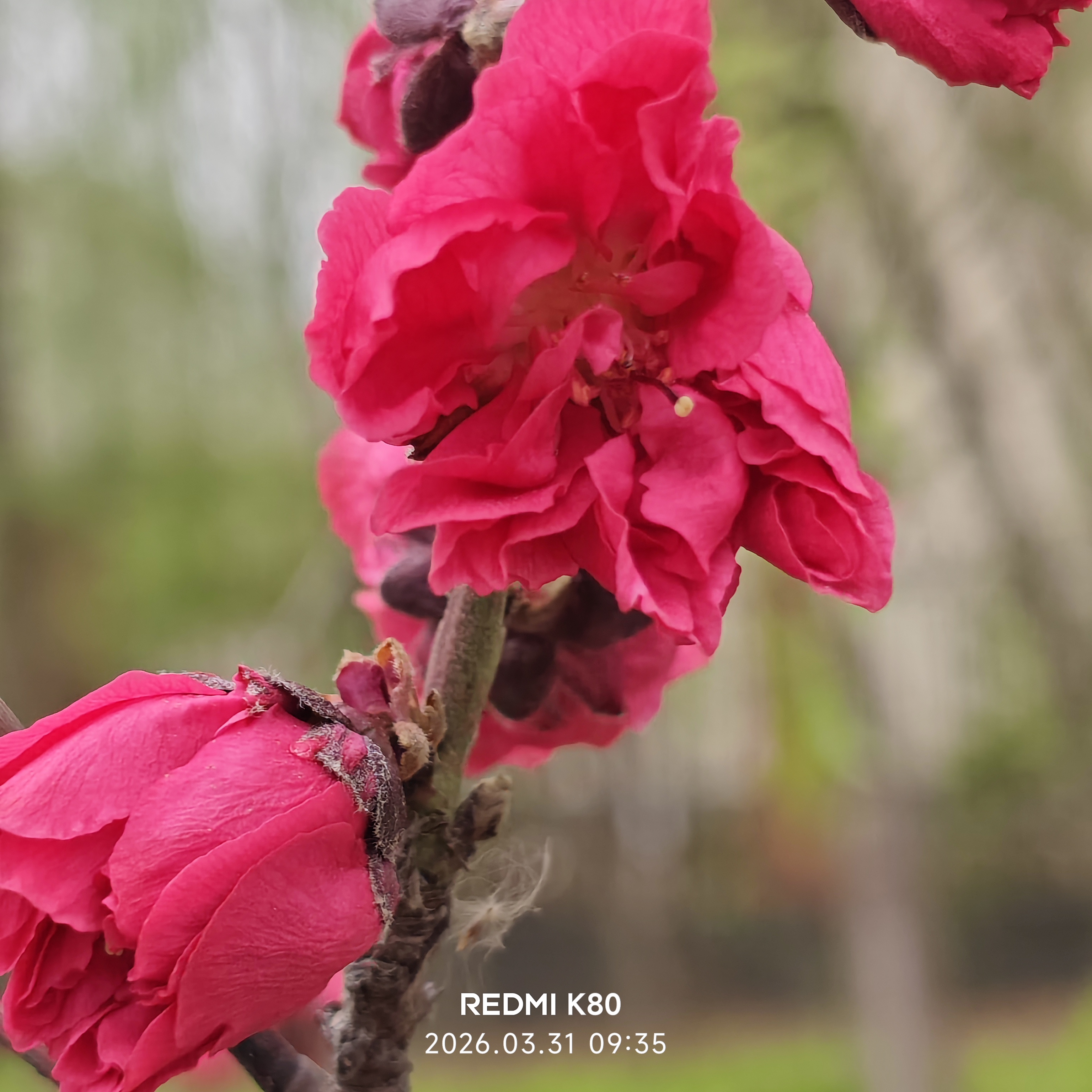《春雨》 烟丝织晓幕,檐角漏春声。 湿翠侵阶软,寒香隔雾轻。 柳垂千缕泪,花凝半盏冰。 坐久苔痕重,心随雨意平。 2026年4月9日 拍摄于任丘!