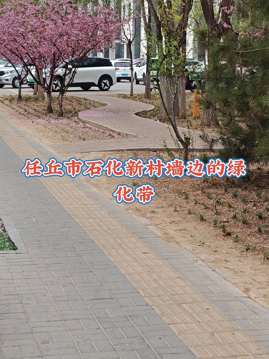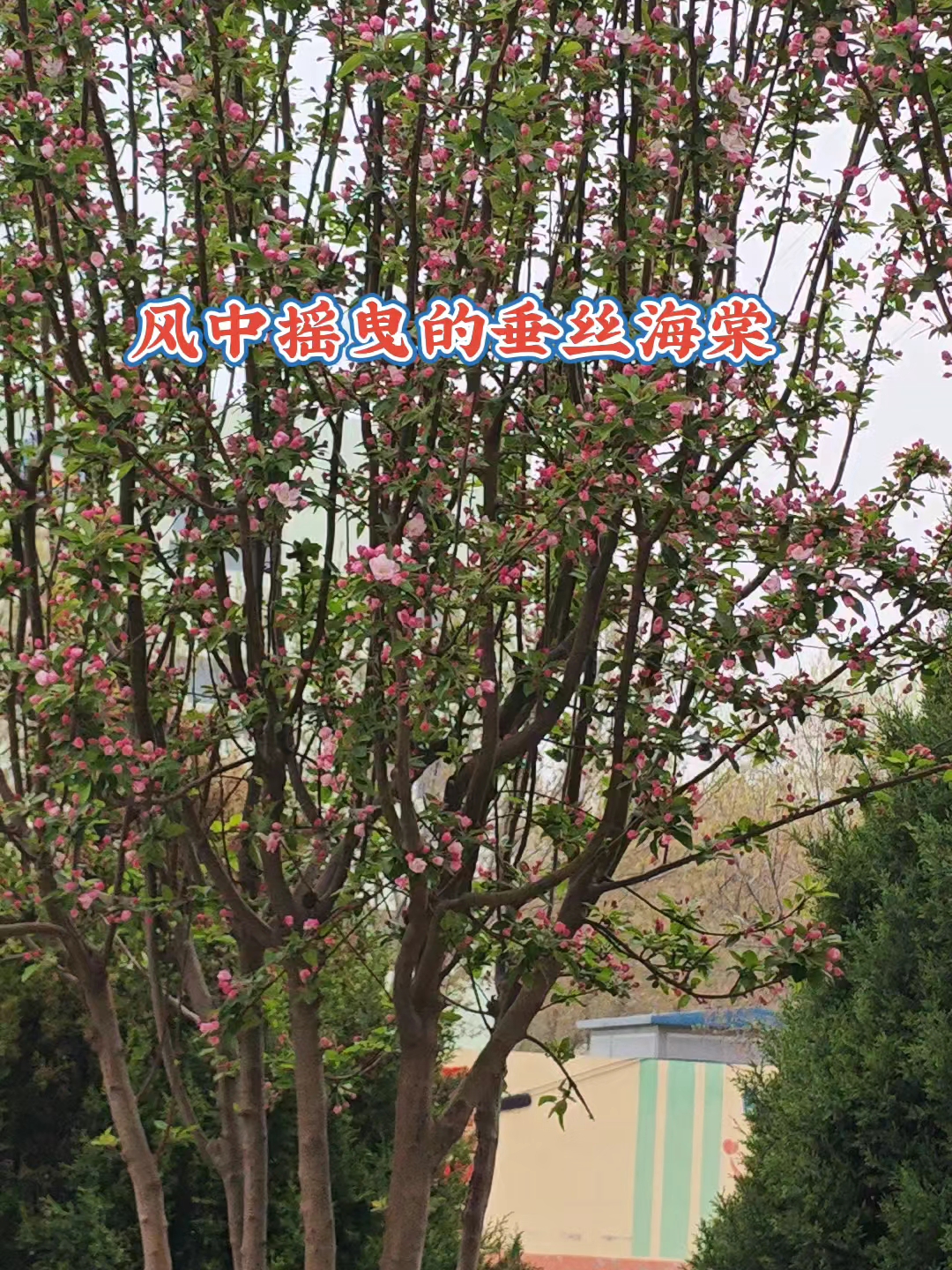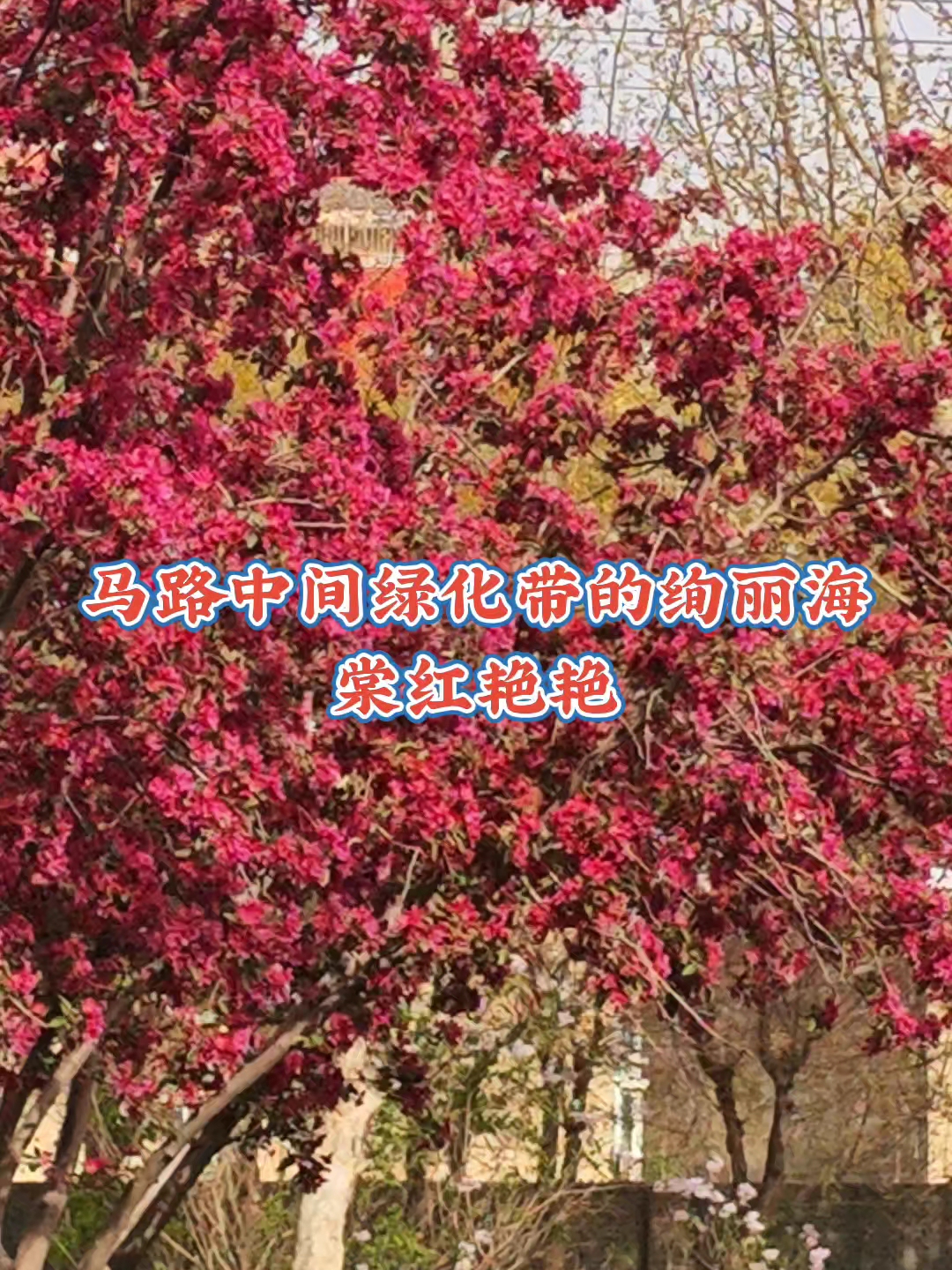 马路中间绿化带的绚丽海棠,绛雪堆枝压露轻,霞分五色染芳汀。半酣晓日凝脂艳,独抱春风带韵馨。影动回廊惊蝶梦,香浮曲槛绕云屏。莫言桃李争春色,自有仙姿照眼明。美丽任丘我的家乡!