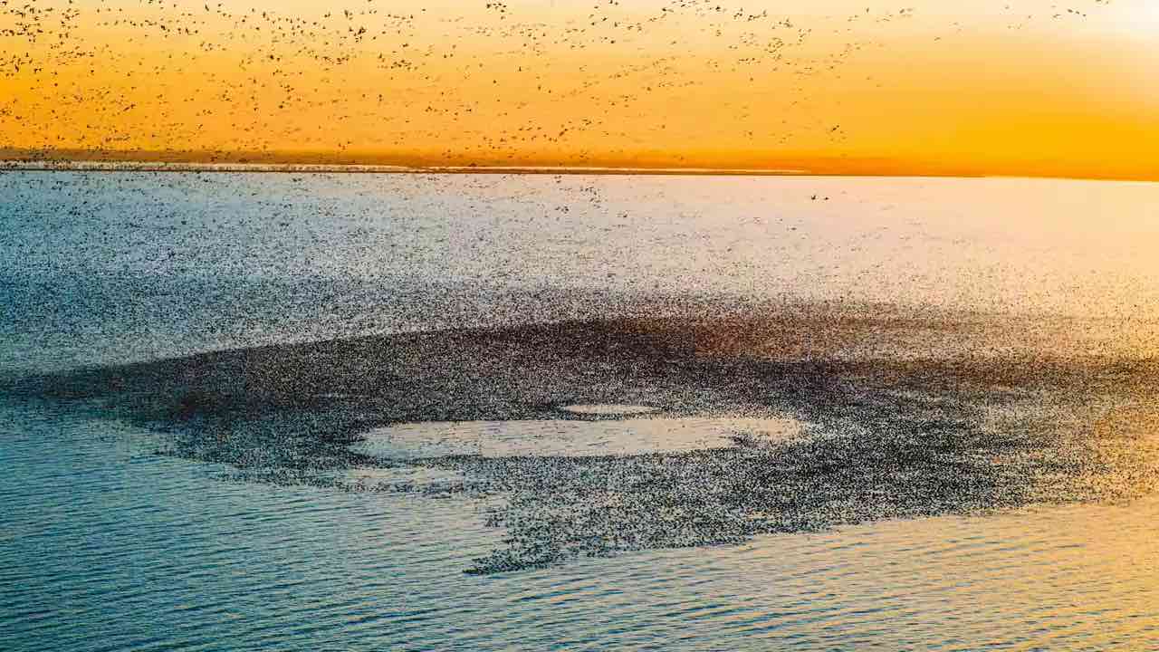 2026年4月4日,康平卧龙湖,日落鸟浪奇观!