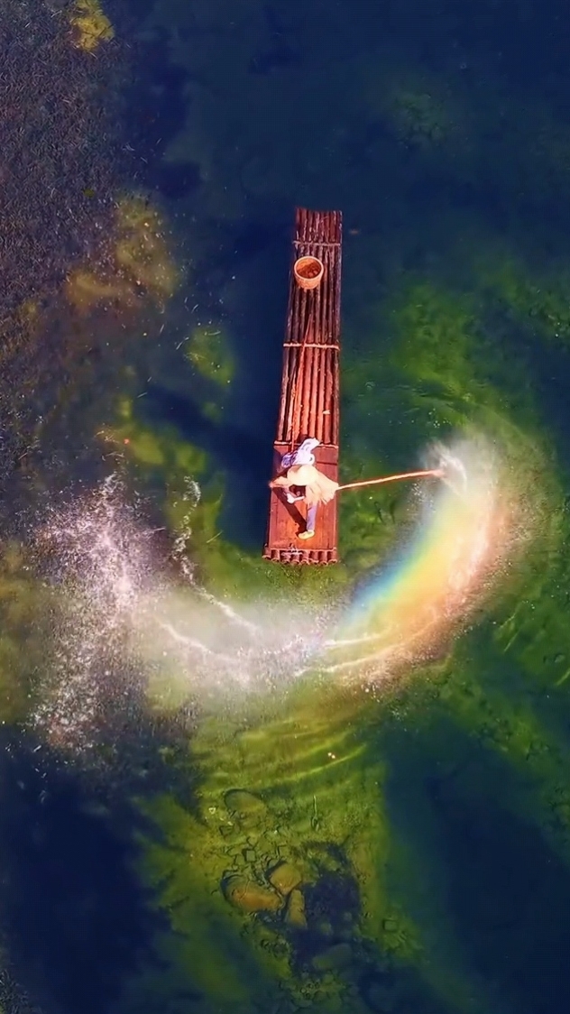 婺源仙境。哪怕是挥桨的瞬间,都能开出一道七彩的光。
