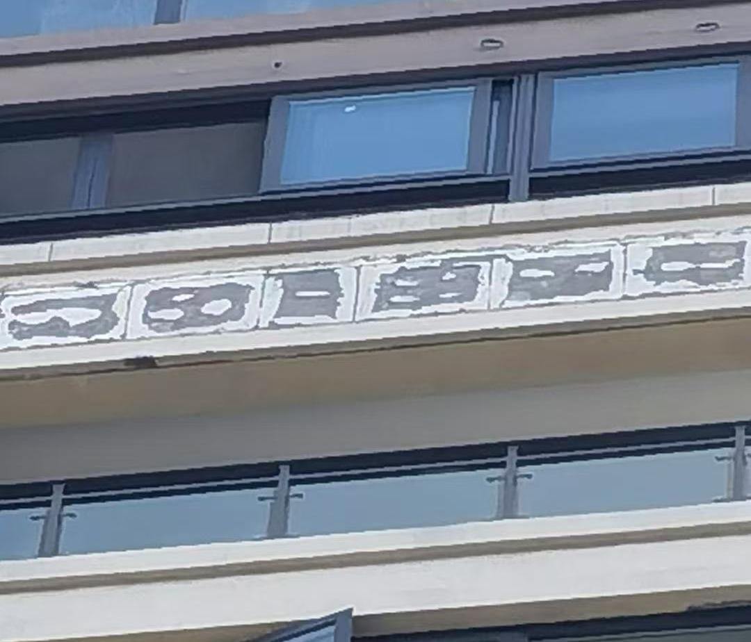 眼下,物业已经出面对外立面进行了初步整修,但根据王先生给记者发来的图片看,整修效果并不理想,能看到明显的修补痕迹,且又出现了鼓包。