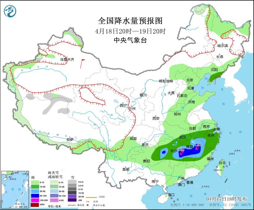 今晚到明天,江汉东南部、江南、华南北部和东部以及贵州东部等地有中到大雨。图源:中央气象台