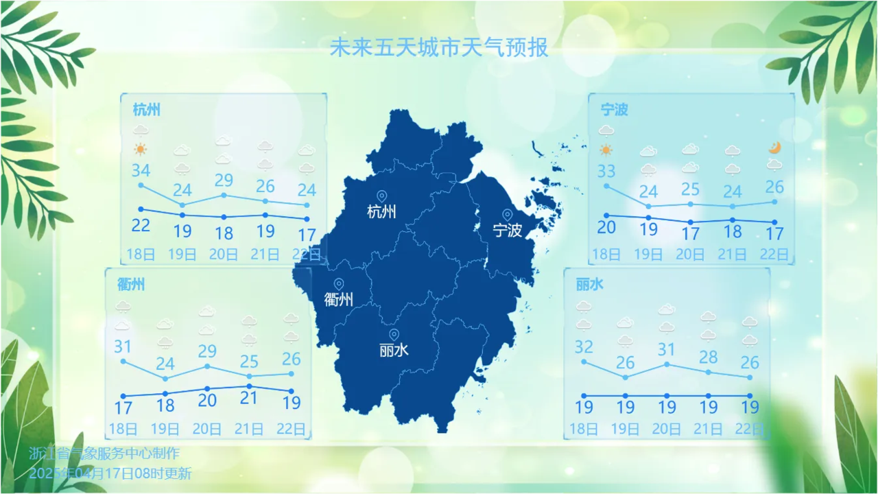 浙江城市天气预报。图源:浙江天气